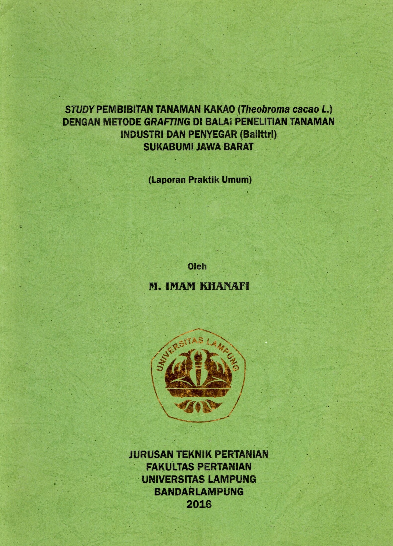 | Judul | Study pembibitan tanaman kakao (Theobroma cacao L.) dengan metode grafting di Balai Penelitian Tanaman Industri dan Penyegar (Balittri) Sukabumi Jawa Barat : Laporan praktikum umum / M. Imam Khanafi |