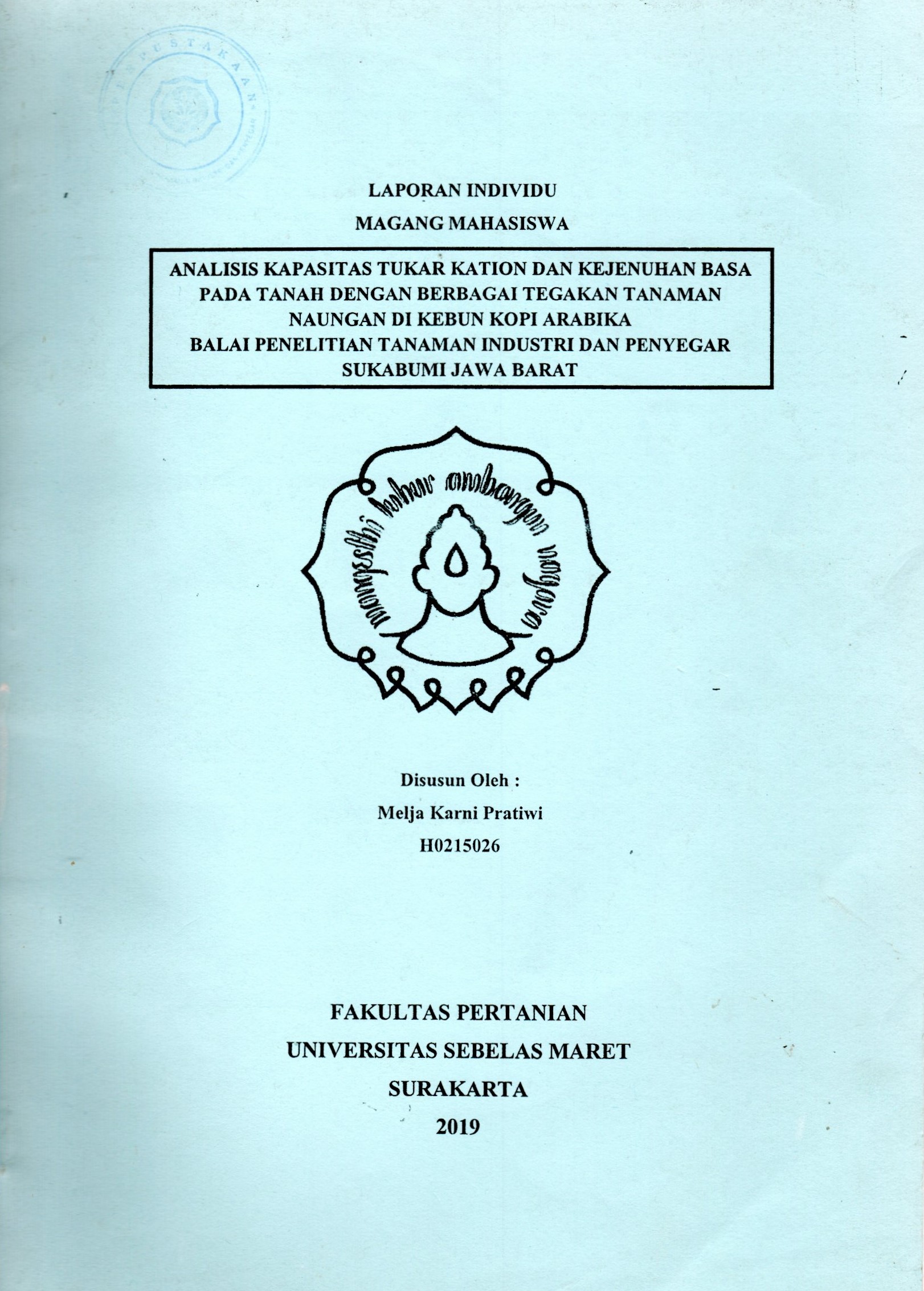 | Judul | Analisis kapasitas tukar kation dan kejenuhan basa pada tanah dengan berbagai tegakan tanaman naungan di kebun kopi arabika Balai Penelitian Tanaman Industri dan Penyegar : Laporan individu magang mahasiswa / Melja Karni Pratiwi |