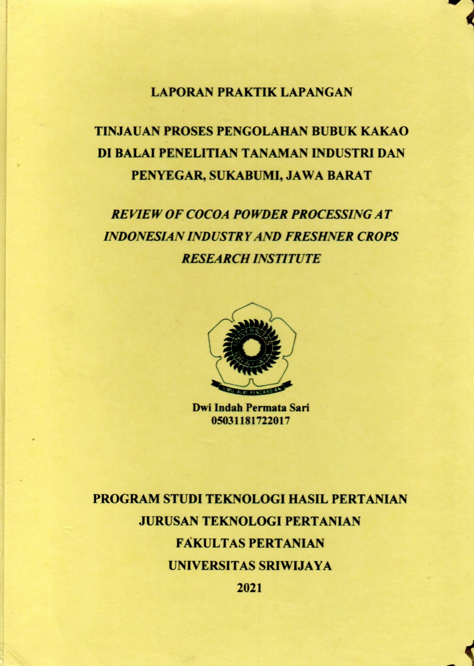 | Judul | Tinjauan proses pengolahan bubuk kakao : laporan praktek kerja lapangan |