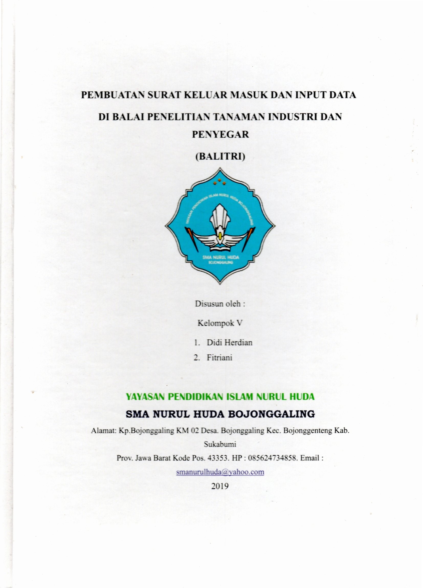| Abstrak | Laporan praktikum ini disusun oleh siswa SMA Nurul Huda Bojonggaling. Desa Bojonggaling Kecamatan Bojonggenteng, Kabupaten Sukabumi. Bidang kerja yang dibahas oleh para siswa selama melakukan praktikum meliputi keorganisasian Balittri dan sistem pengelolaan surat kedinasan. |