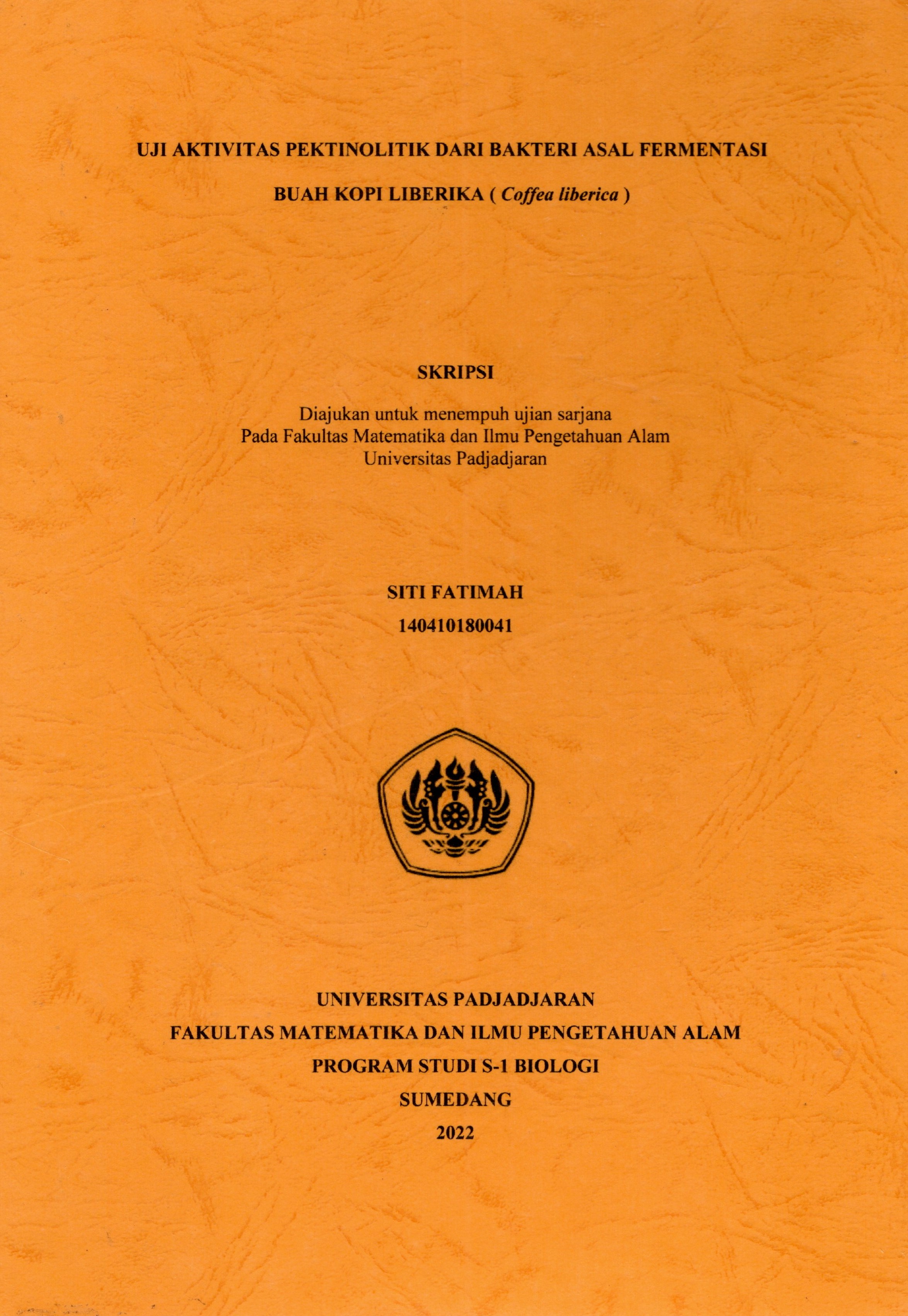 | Judul | Uji aktivitas pektinolitik dari bakteri asal fermentasi buah kopi liberika (coffea liberica) : skripsi / Siti Fatimah |