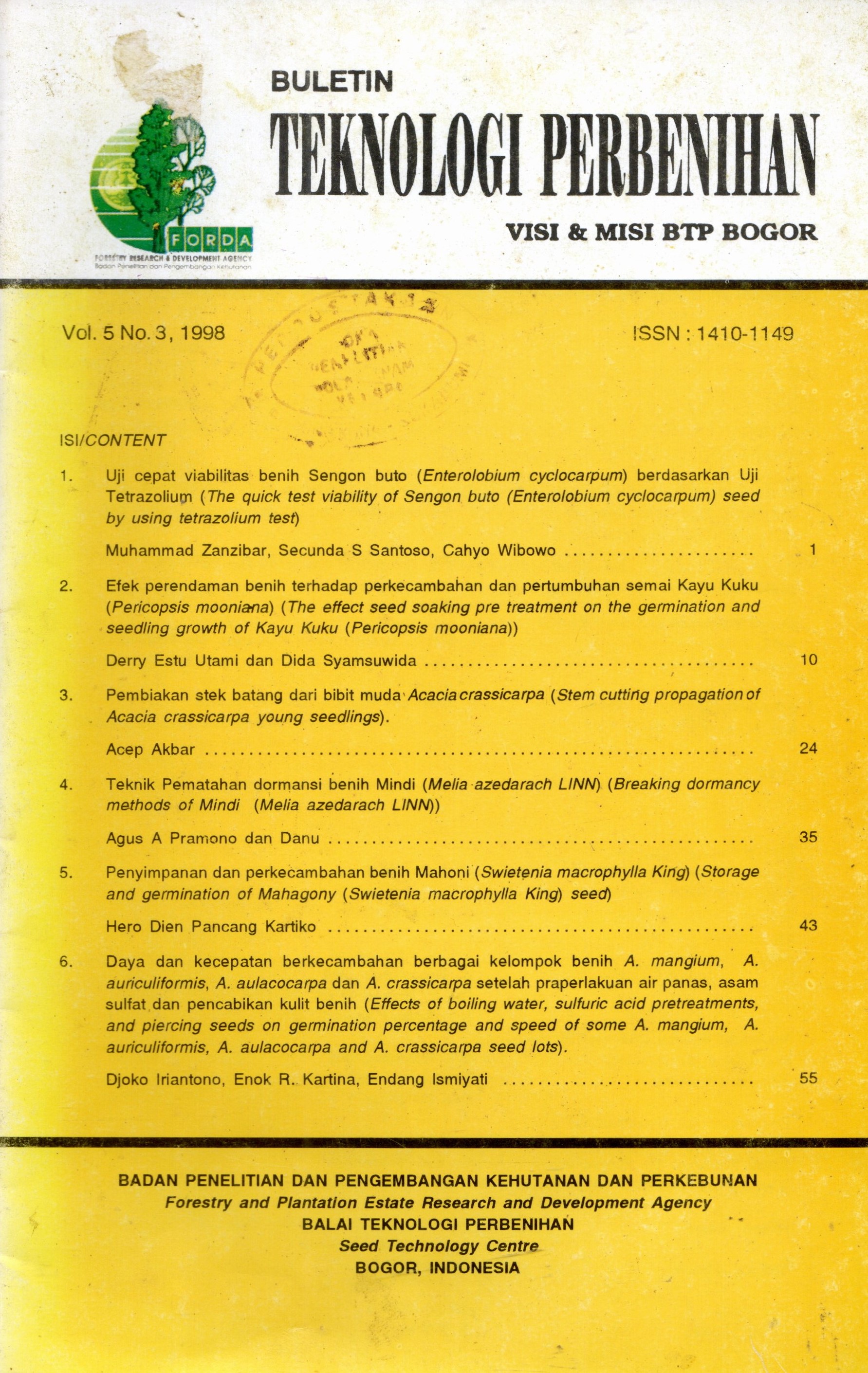 | Penerbitan | Bogor : Badan Penelitian dan Pengembangan Kehutanan dan Perkebunan, 1998 |