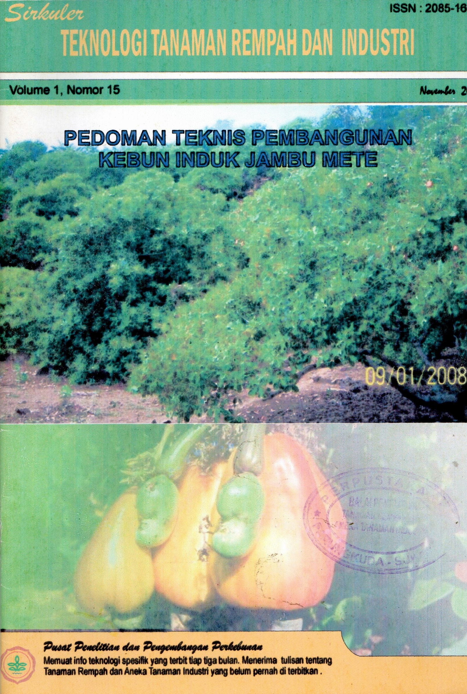 | Judul | Sirkuler teknologi tanaman rempah dan industri vol. 1 no. 15 november 2009 pedoman teknis pembangunan kebun induk jambu mete / Kepala Balai Penelitian Tanaman Rempah dan Aneka Tanaman Industri |