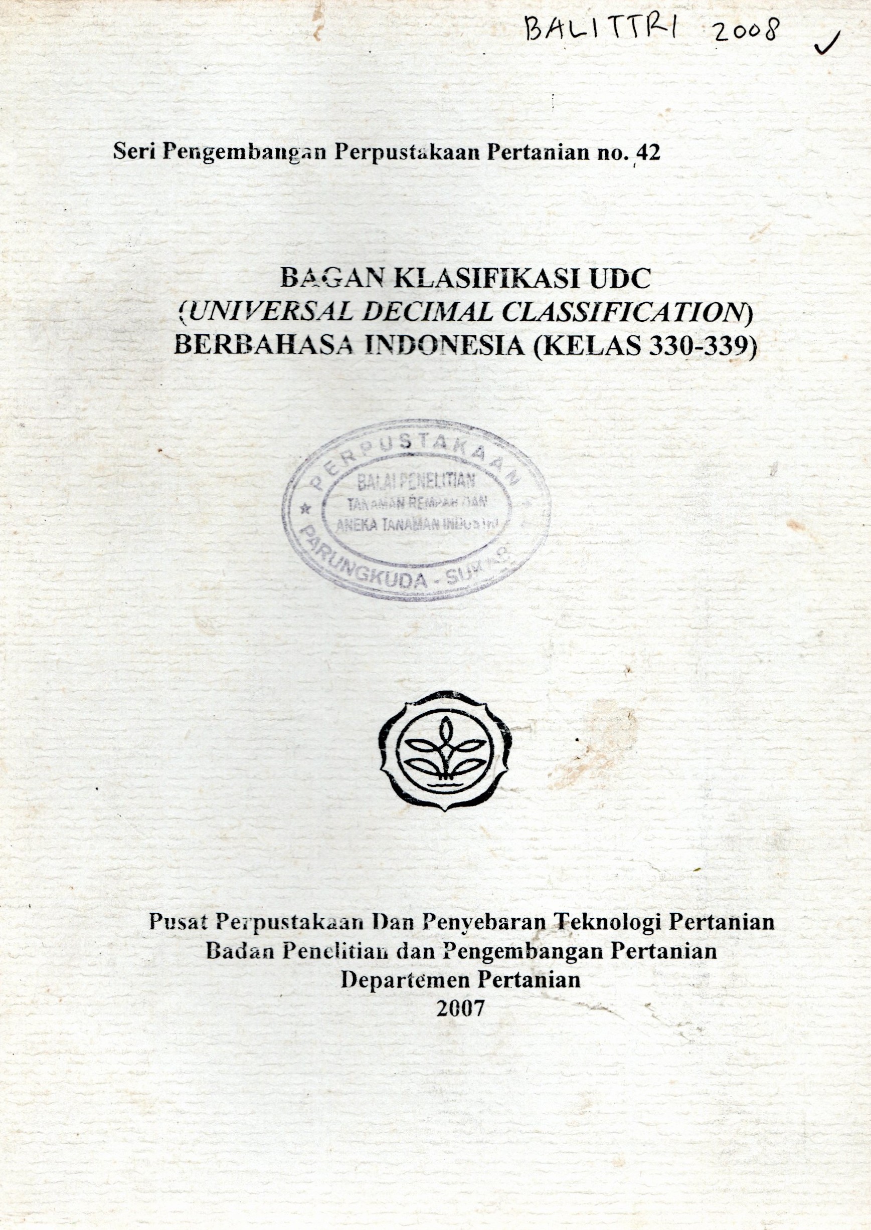 | Judul | Bagan klasifikasi udc (Universal decimal classification) berbahasa Indonesia (kelas 330-339) : Seri pengembangan perpustakaan pertanian no. 42 |