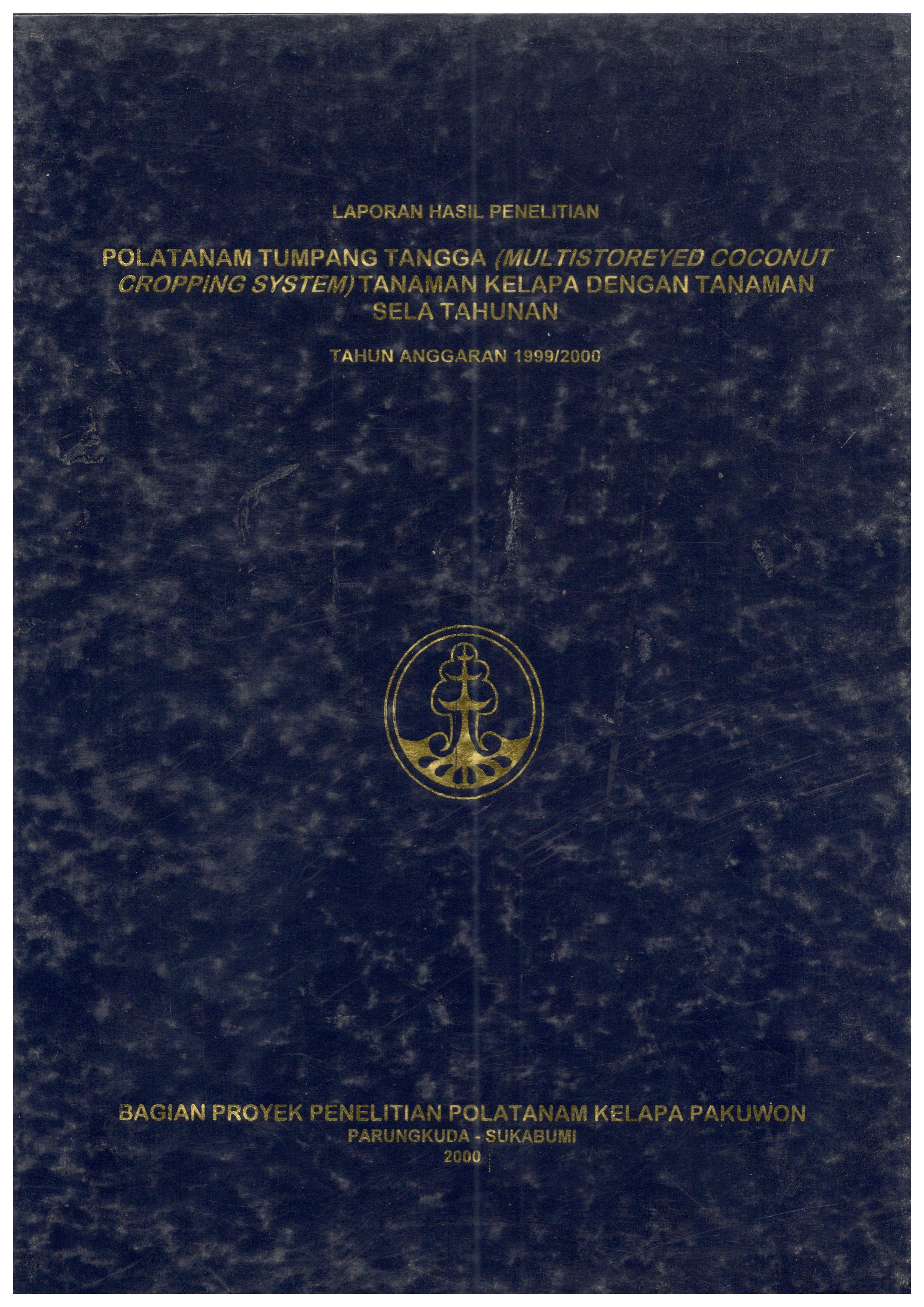 | Judul | Polatanam tumpang tangga (Multistoreyed coconut cropping system) tanaman kelapa dengan tanaman sela tahunan tahun anggaran 1999/2000 : Laporan hasil penelitian / D.D. Tarigans |