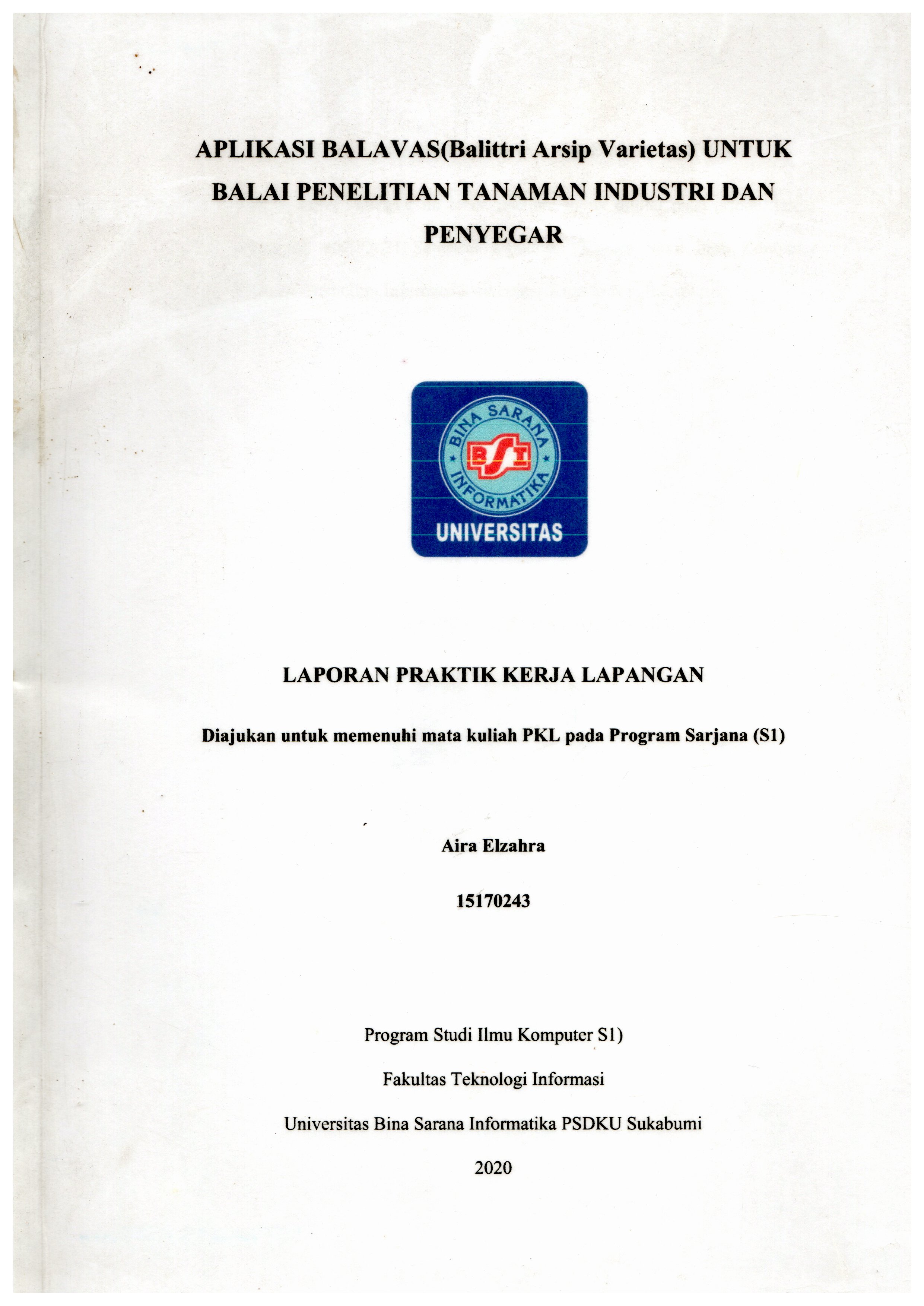 | Judul | Aplikasi balavas (Balittri Arsip Varietas) untuk balai penelitian tanaman industri dan penyegar : laporan praktik kerja lapangan / Aira Elzahra |
