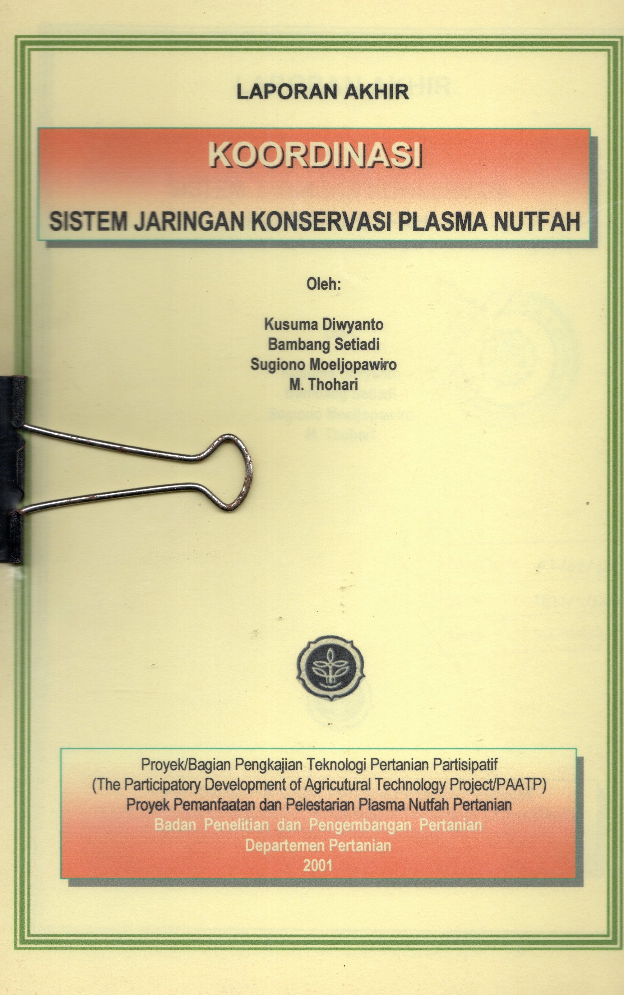 | Judul | Laporan akhir koordinasi sistem jaringan konservasi plasma nutfah / Kusuma Diwyanto |
