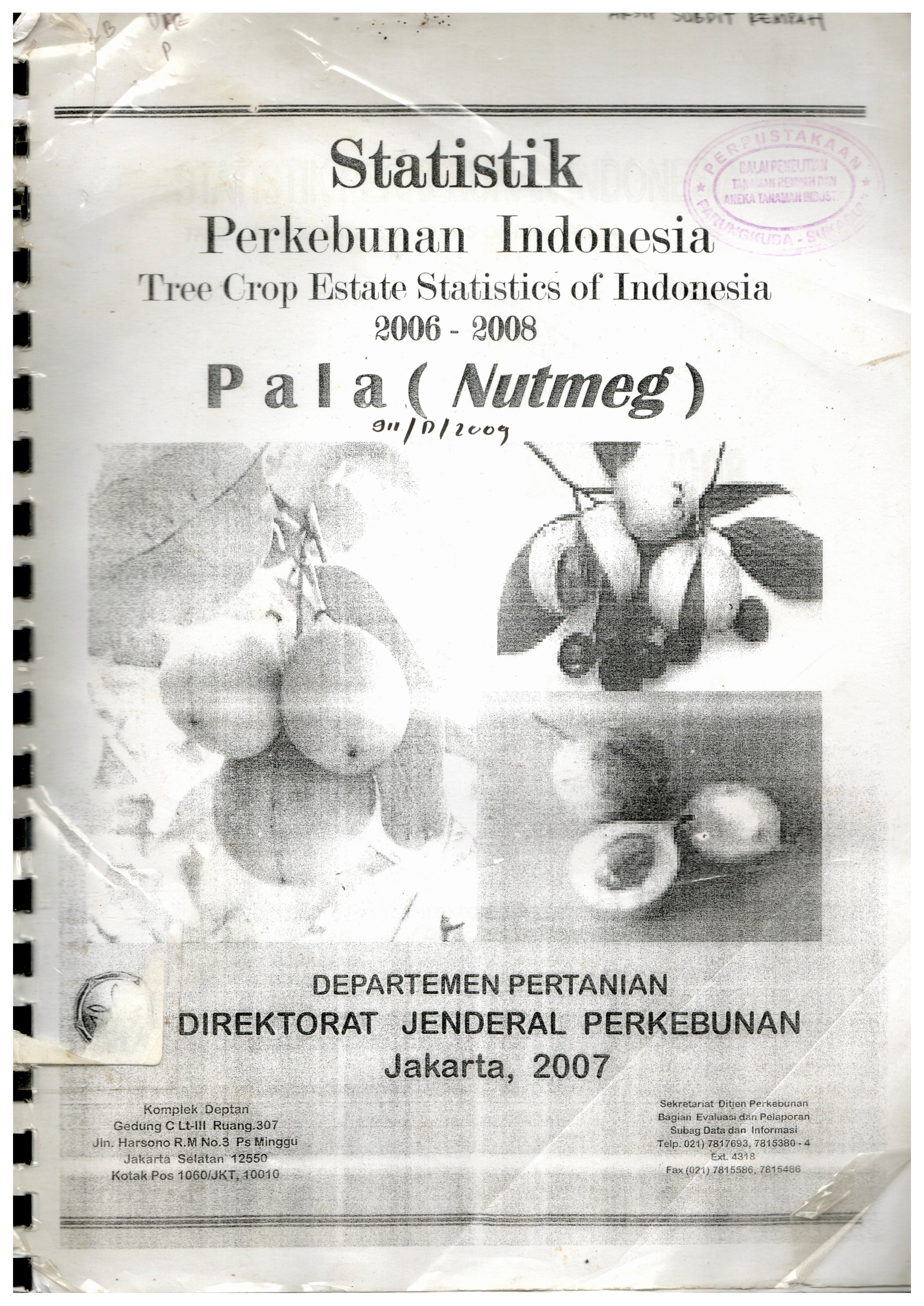 | Judul | Statistik perkebunan Indonesia tree crop estate statistics of Indonesia 2006-2008 pala (nutmeg) / Sekertariat Direktorat Jenderal Perkebunan |