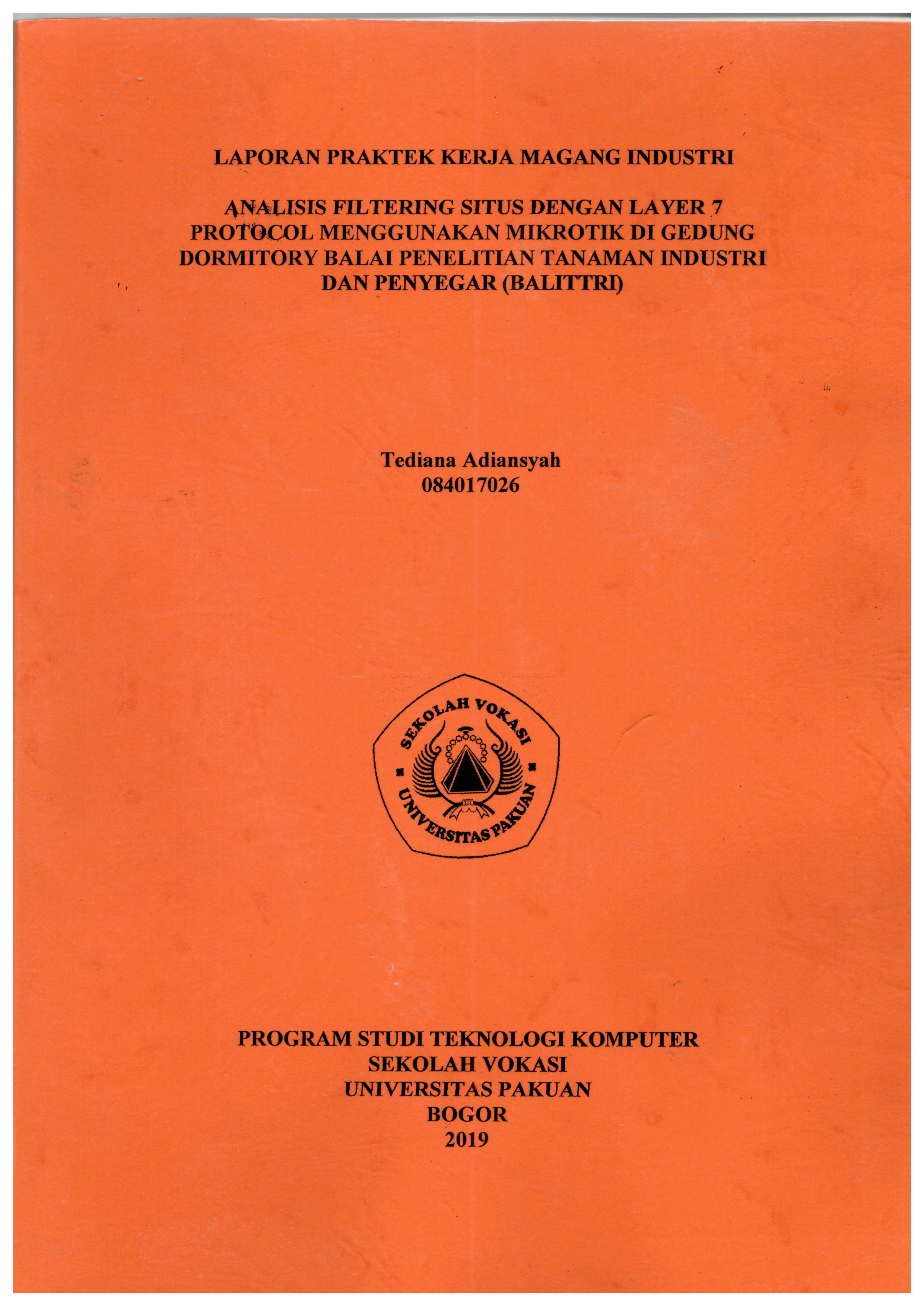 | Judul | Analisis filtering situs dengan layer 7 protocol menggunakan mikrotik di gedung dormitory Balai penelitian tanaman industri dan penyegar (Balittri) : laporan praktik kerja lapangan / Tediana Adiansyah |