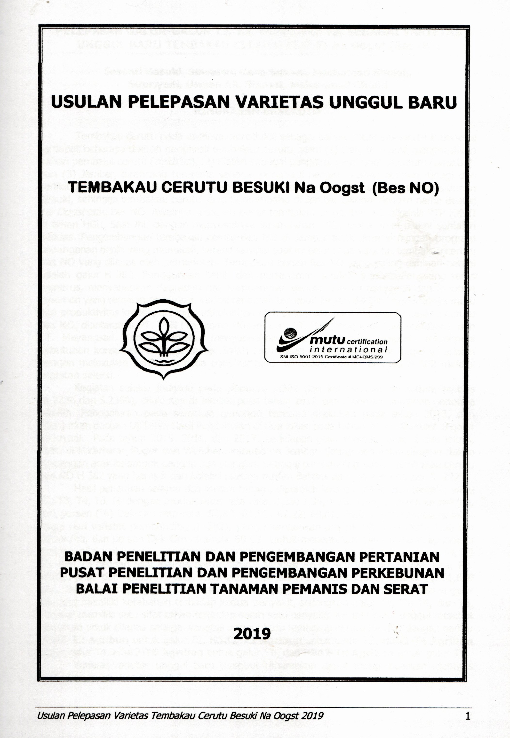| Judul | Usulan pelepasan varietas unggul baru tembakau cerutu besuki na oogst (Bes NO) / Sesanti Basuki |