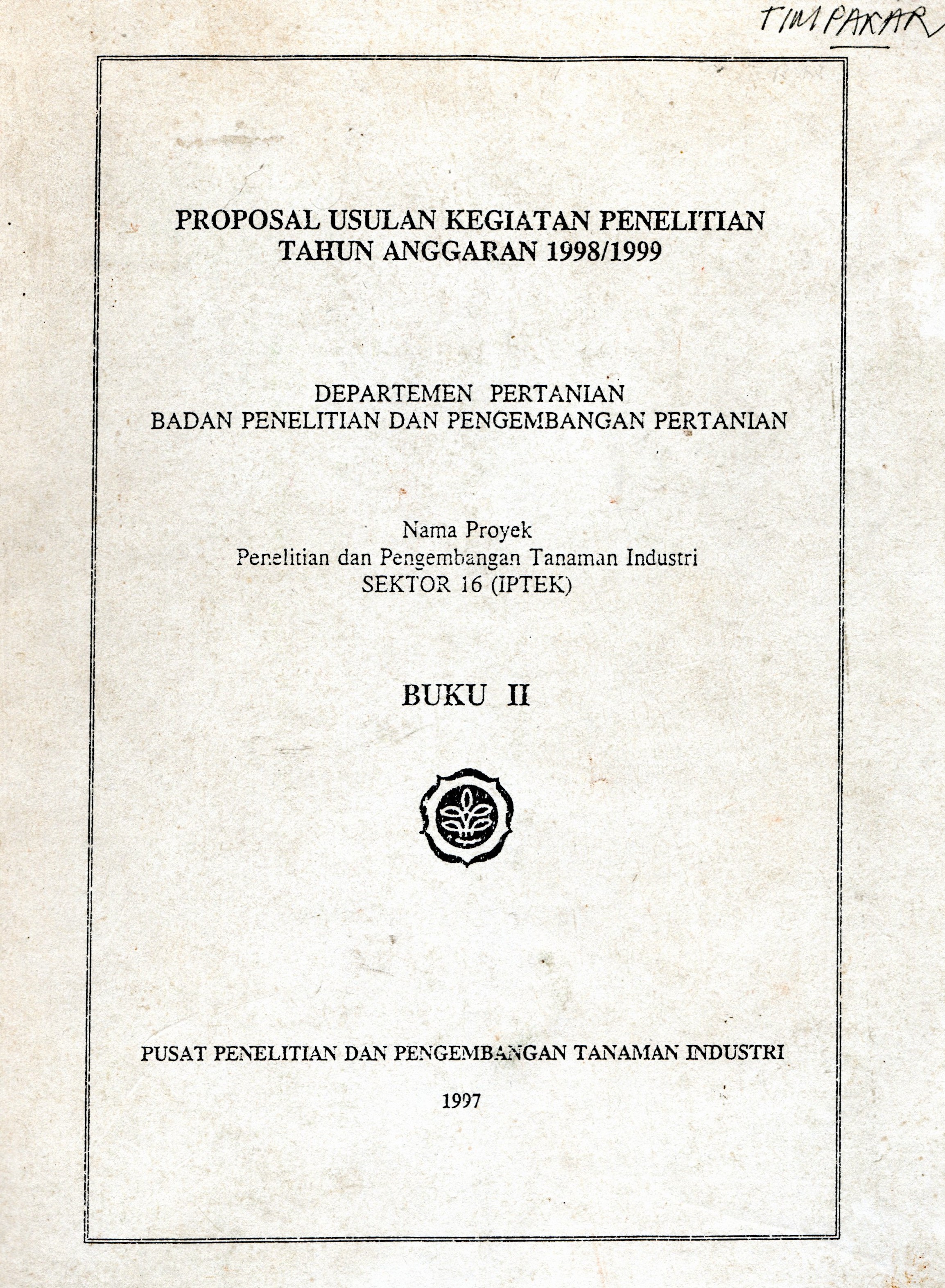 | Judul | Proposal usulan kegiatan penelitian tahun anggaran 1998/1999 / Pusat Penelitian dan Pengembangan Tanaman Industri |