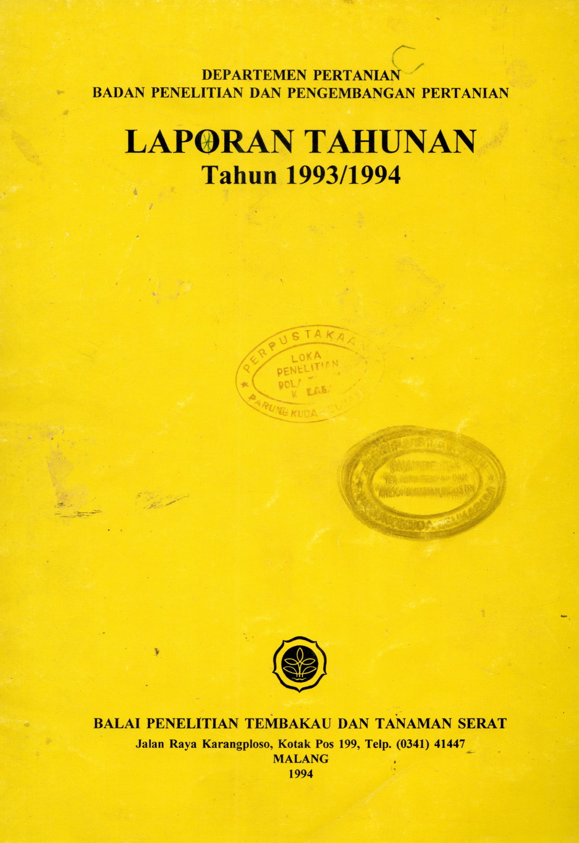 | Judul | Laporan tahunan tahun 1993/1994 / Kepala Balai Penelitian Tembakau dan Tanaman Serat |
