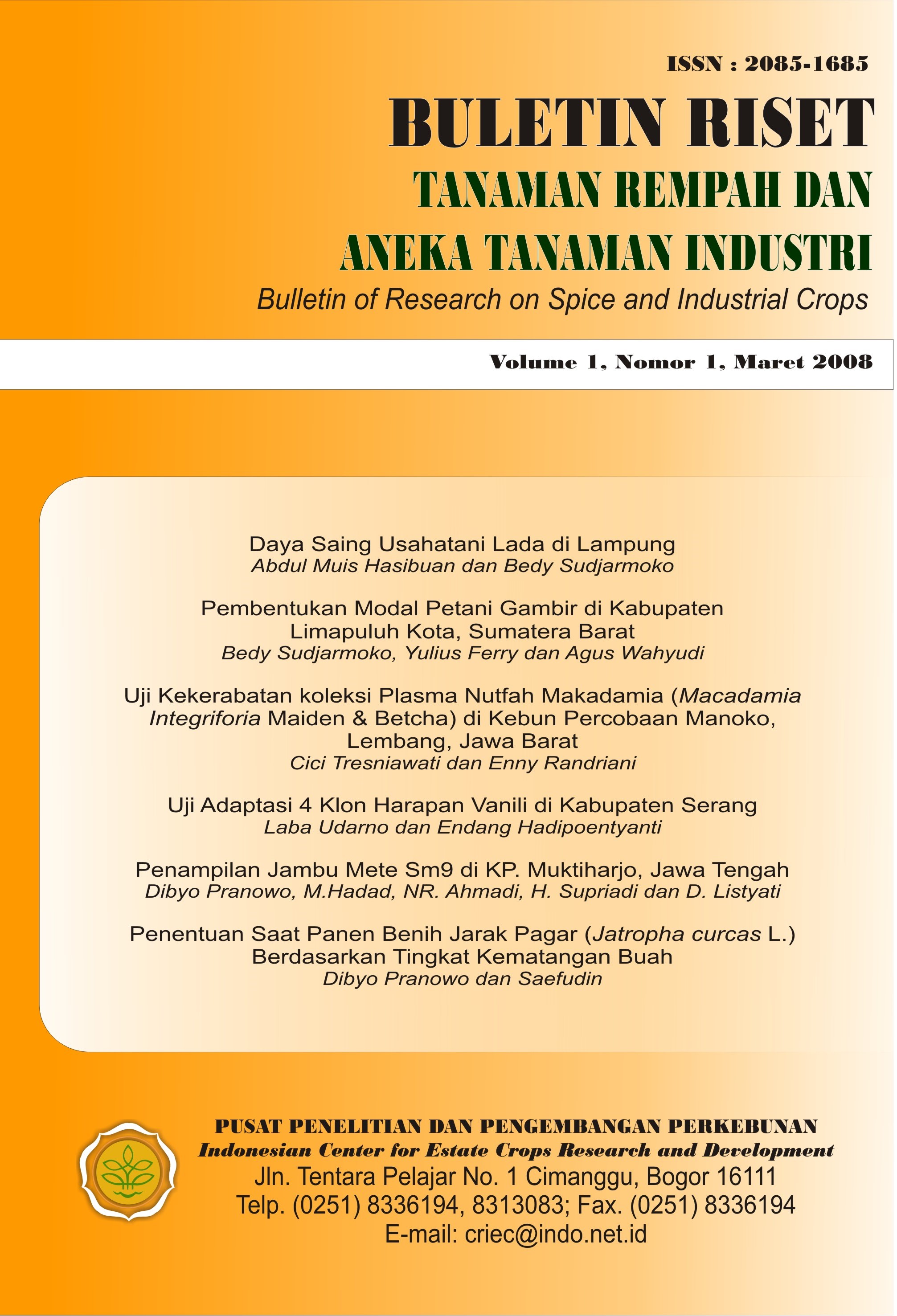 | Judul | BULETIN RISET TANAMAN REMPAH DAN ANEKA TANAMAN INDUSTRI VOL 1, NO 1, 2008 |