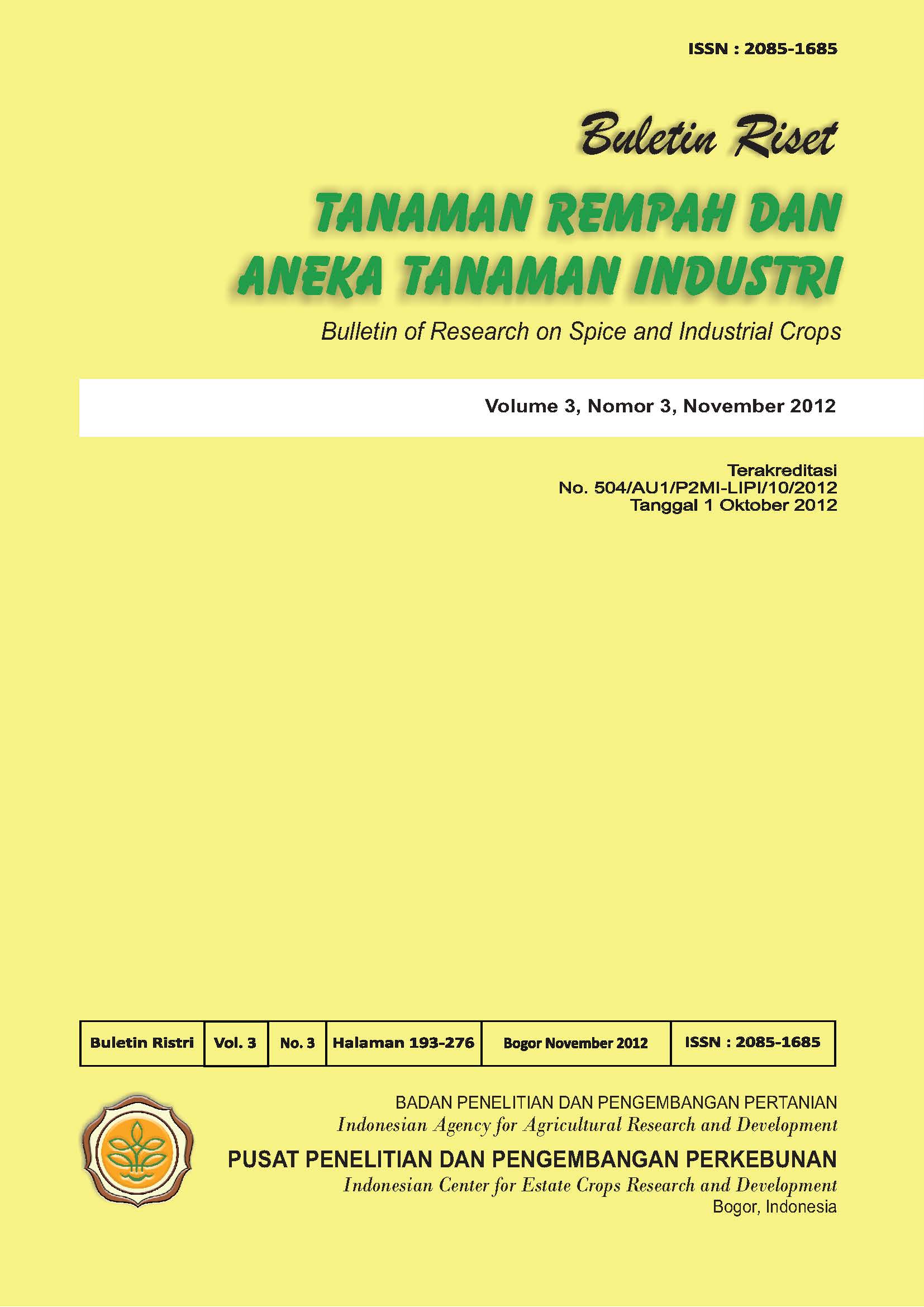 | Judul | BULETIN RISET TANAMAN REMPAH DAN ANEKA TANAMAN INDUSTRI VOL 3, NO 3, NOVEMBER 2012 |