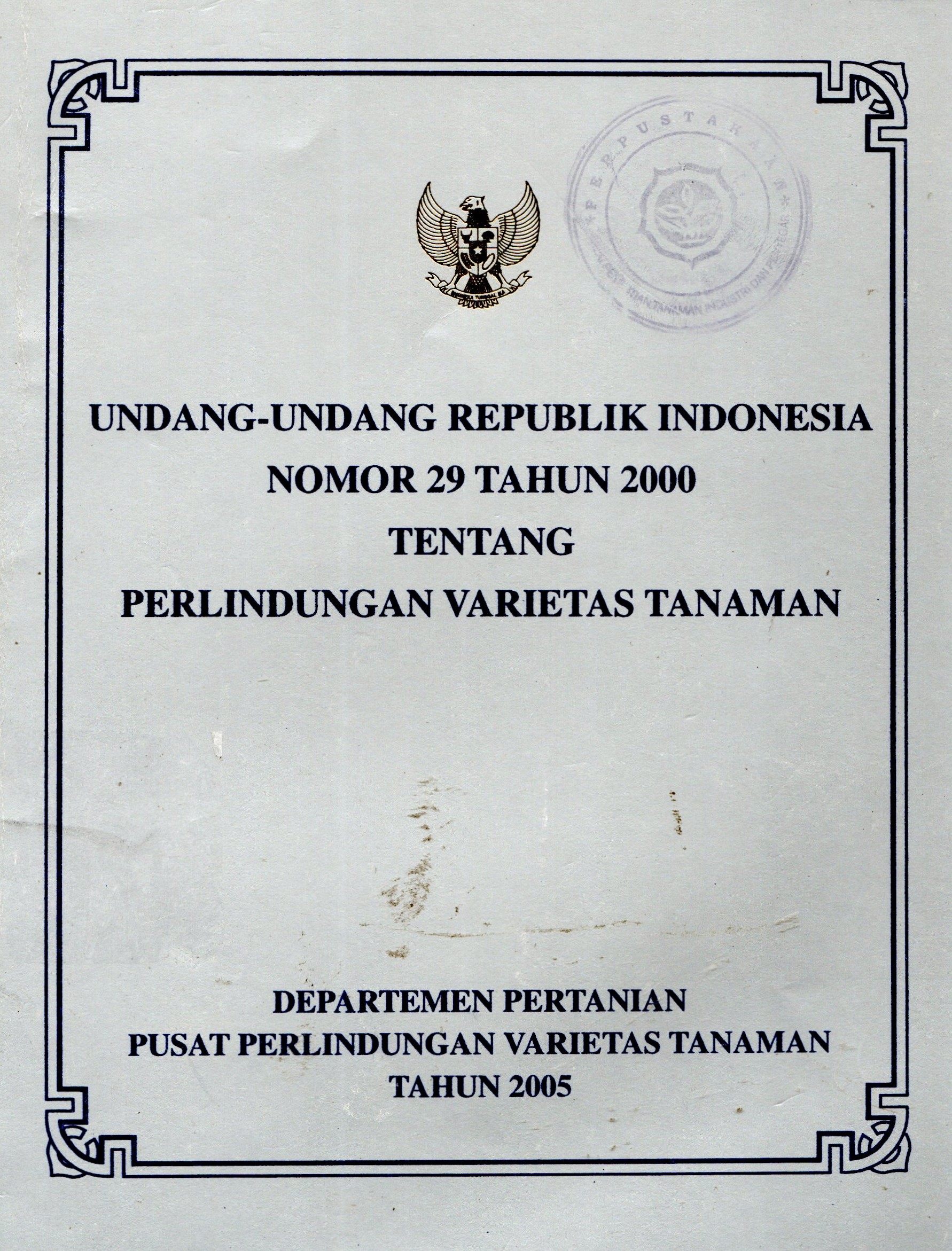| Judul | Undang-undang Republik Indonesia Nomor 29 Tahun 2000 Tentang Perlindungan varietas tanaman / Sugiono Moeljopawiro |