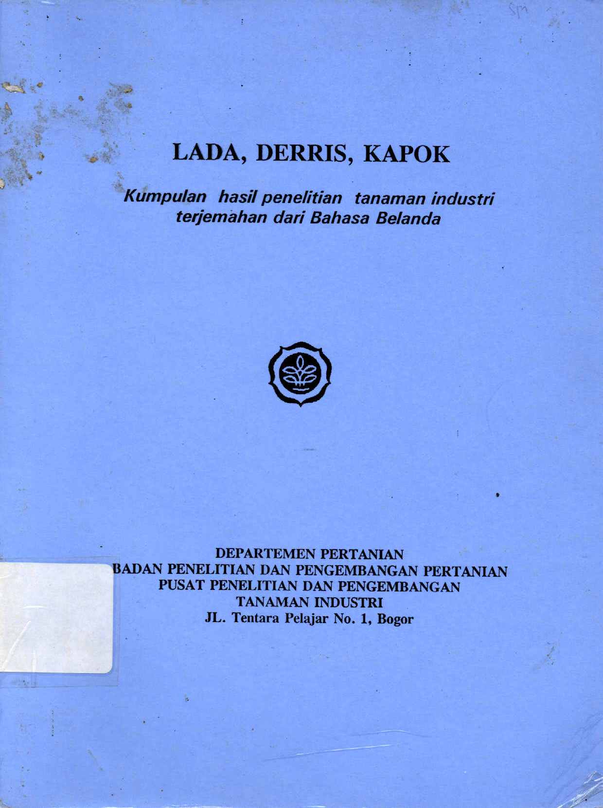 | Judul | Lada, derris, kapok kumpulan hasil penelitian tanaman industri terjemahan dari Bahasa Belanda / Pasril Wahid |