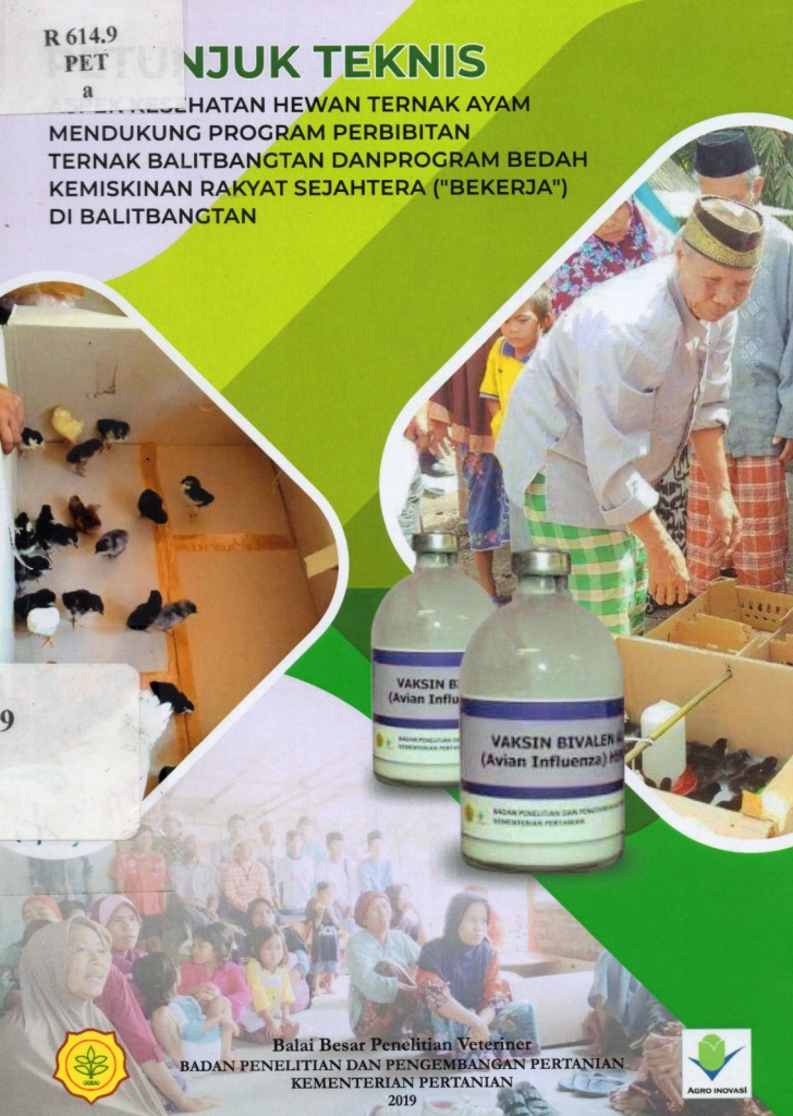 | Judul | PETUNJUK TEKNIS Aspek Kesehatan Hewan Ternak Ayam Mendukung Program Perbibitan Ternak Balitbangtan Dan Program Bedah Kemiskinan Rakyak Sejahtera (''BEKERJA'') Di Balitbangtan. / Suhardono |