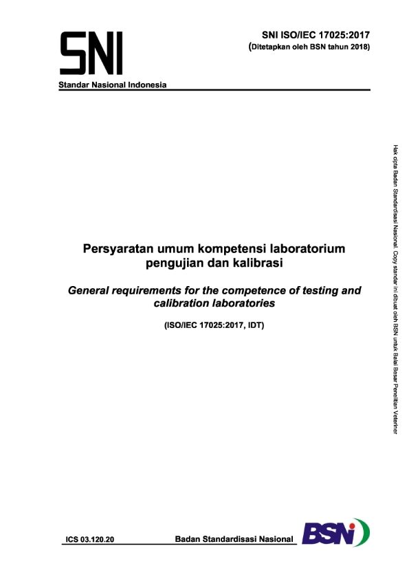 | Judul | STANDAR Nasional Indonesia: Persyaratan Umum Kompetensi Laboratorium Pengujian dan Kalibrasi (ISO/IEC 17025:2017, IDT) / Badan Standardisasi Nasiona |