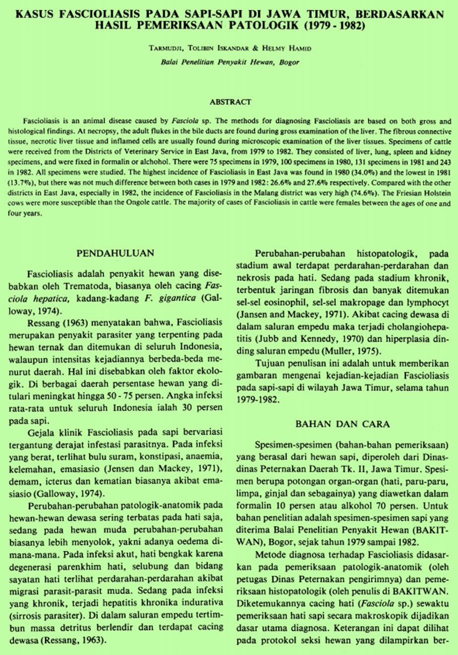 | Subjek | INDONESIA -- CATTLE -- FASCIOLIASIS -- MORBIDITY |
