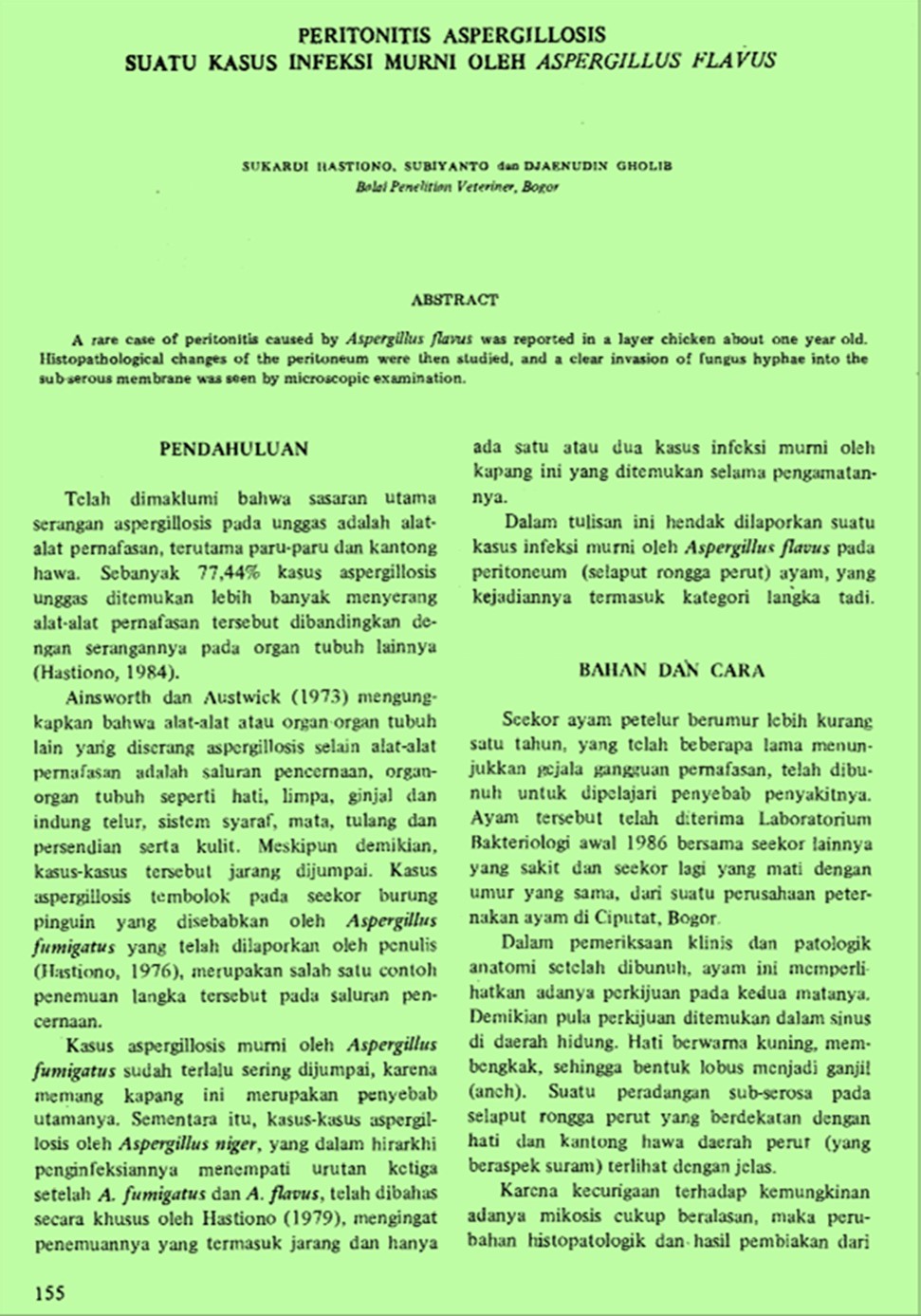 | Judul | Peritonitis Aspergillosis Suatu Kasus Infeksi Murni oleh Aspergillus Flavus / Hastiono, Sukardi; Gholib, Djaenudin |