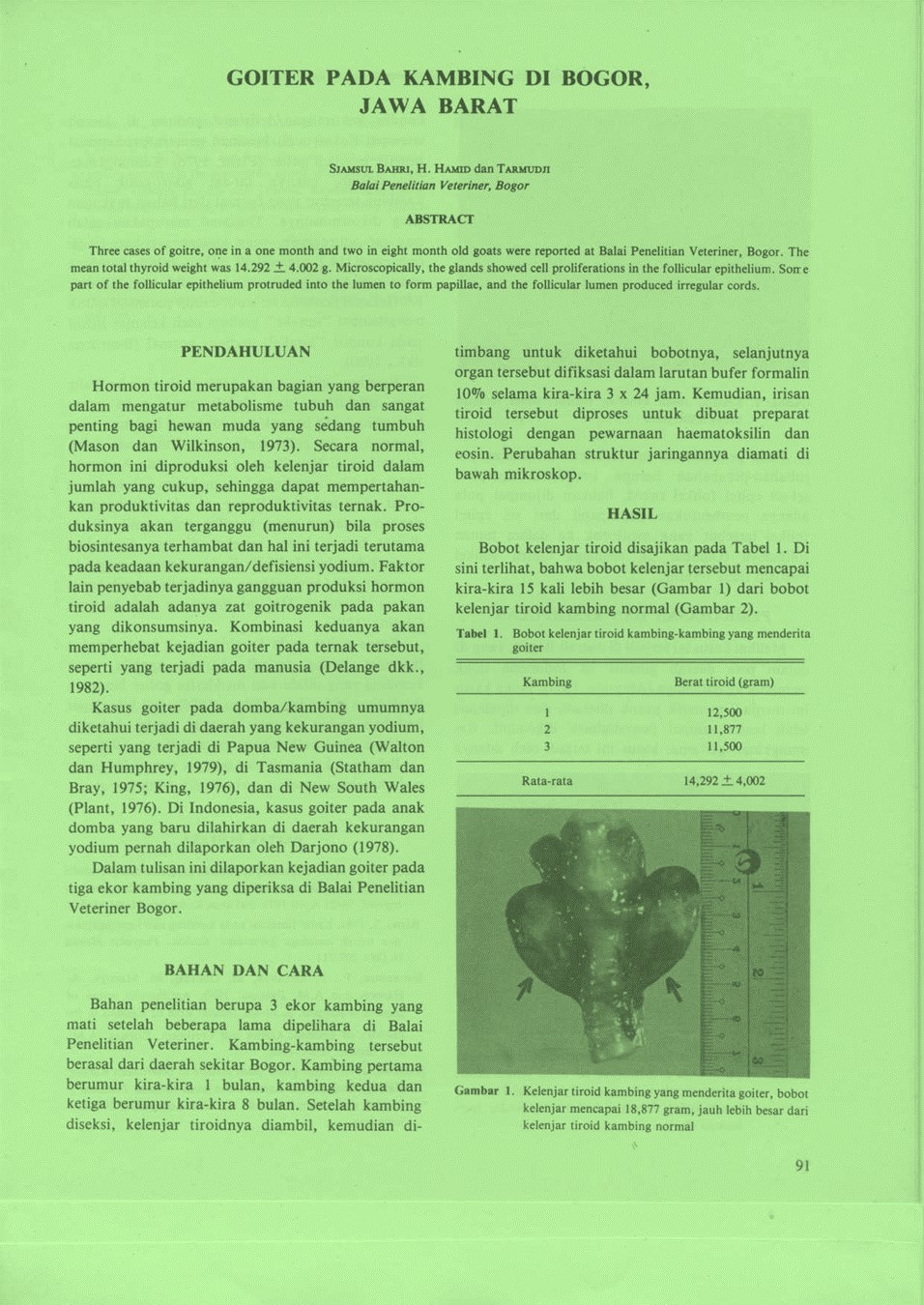 | Judul | Goiter pada kambing di Bogor, Jawa Barat. / Bahri, Sjamsul; Hamid, Helmy; Tarmudji( Balai Penelitian Veteriner, Bogor (Indonesia)). |
