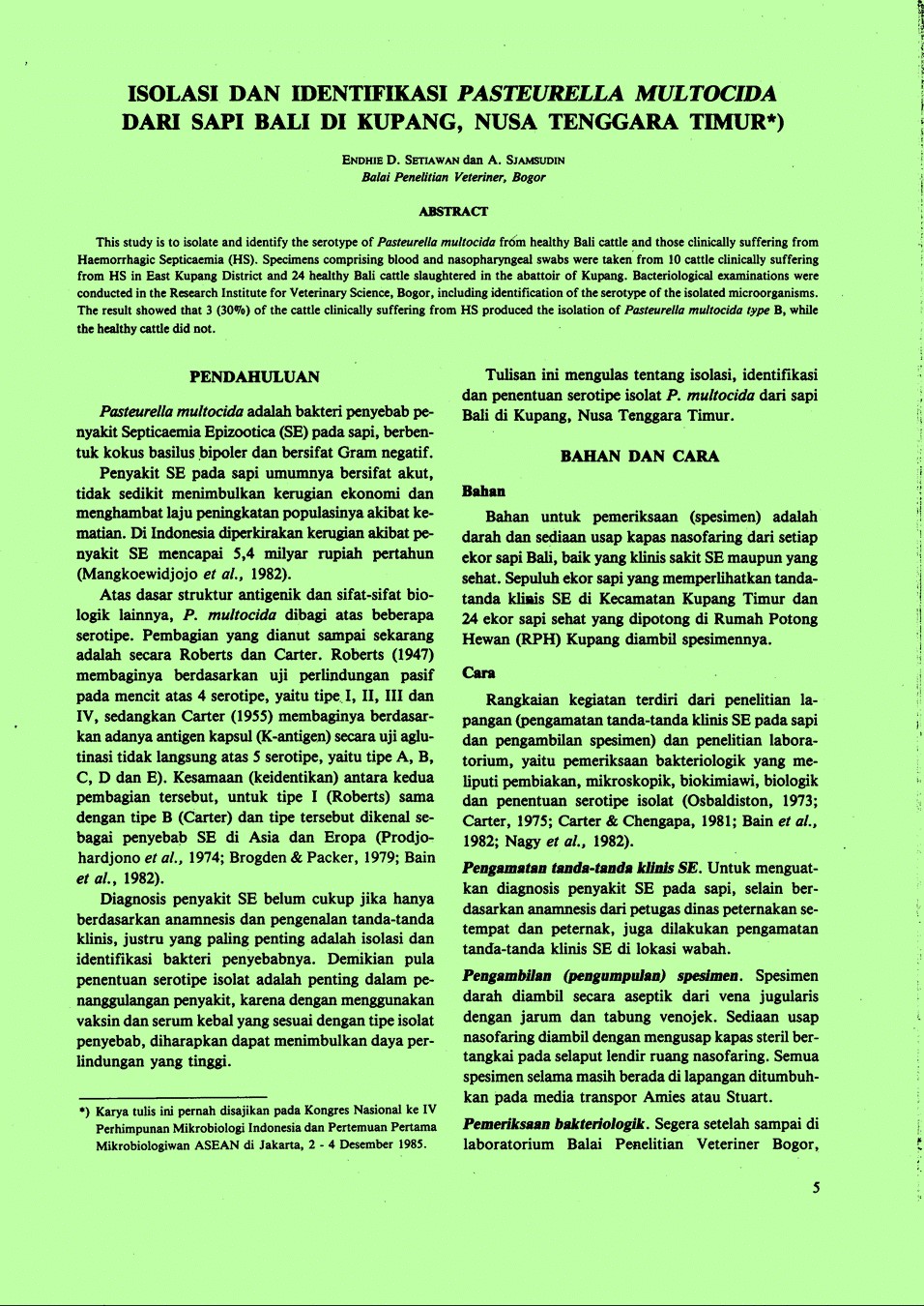 | Pengarang | Syamsudin, Anif (Balai Penelitian Veteriner, Bogor (Indonesia)). |