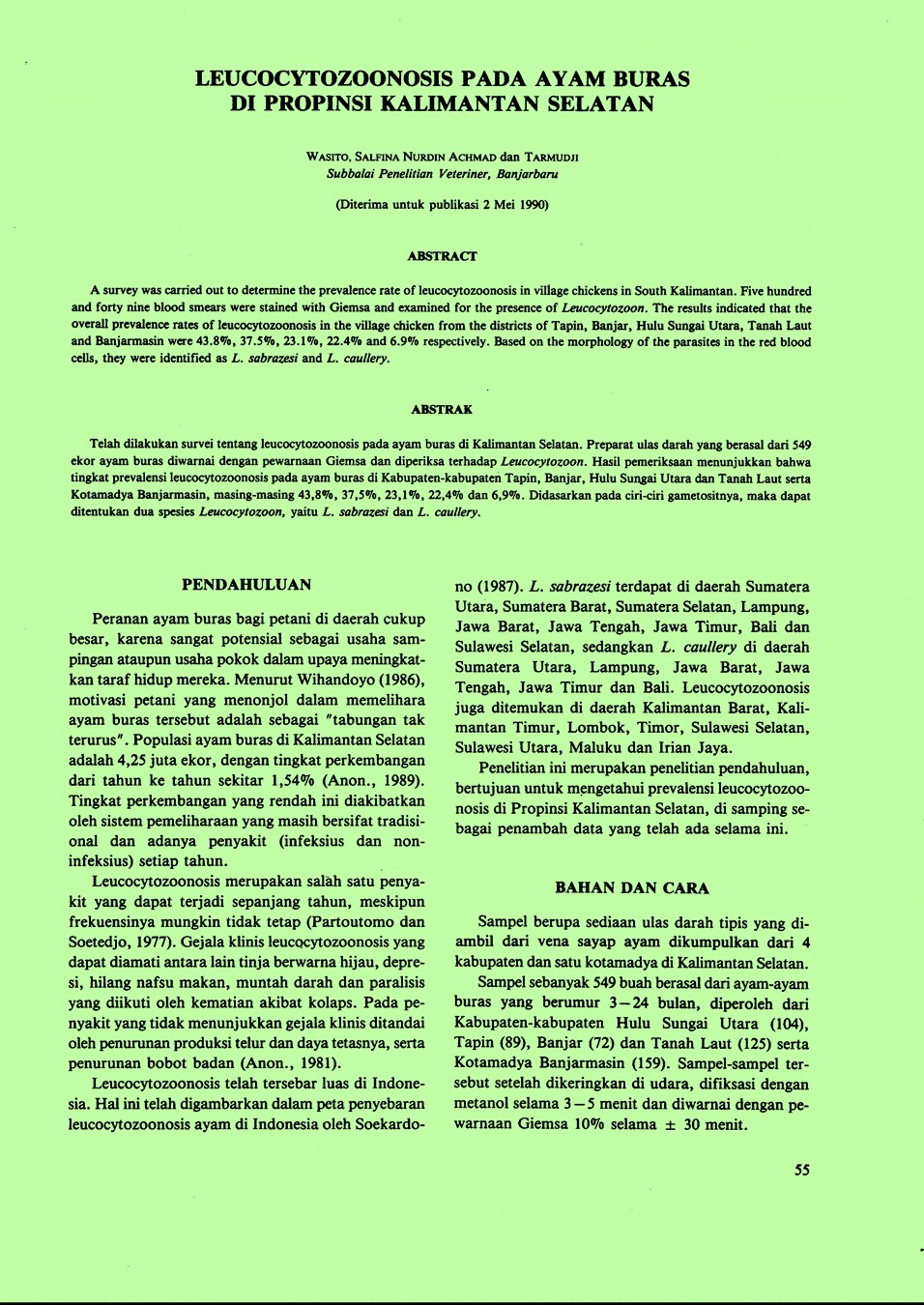 | Pengarang | Achmad, Salfina Nurdin Tarmudji(Sub Balai Penelitian Veteriner, Banjarbaru (Indonesia)). |