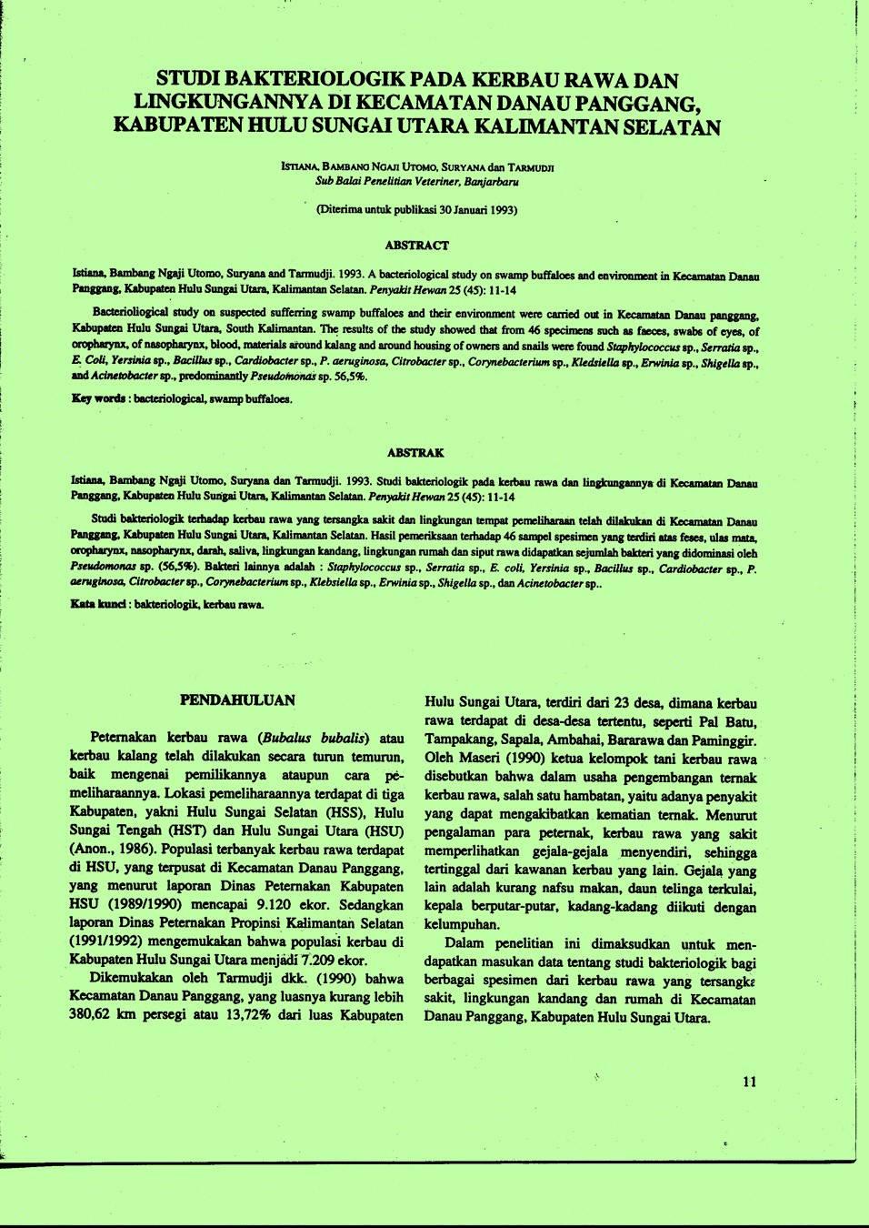 | Pengarang | Utomo, Bambang Ngaji Suryana Tarmudji(Sub Balai Penelitian Veteriner, Banjarbaru (Indonesia)). |