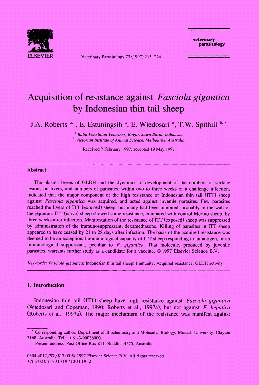 | Judul | Acquisition of resistance against Fasciola gigantica by Indonesian thin tain sheep / ROBERTS, J.A.; SPITHILL, T.W.(Victorian Institute of Animal Science( Australia))ESTUNINGSIH, SARWITRI ENDAH; WIEDOSARI, ENING(Balai Penelitian Veteriner, Bogor (Indonesia)). |