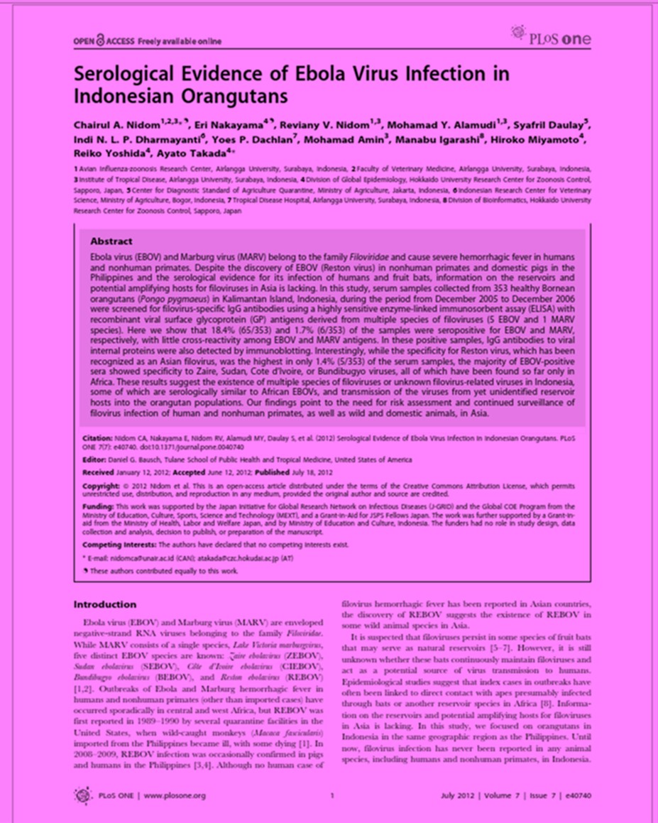 | Judul | Serological Evidence of Ebola Virus Infection in Indonesian Orangutans / Nidom, C.A; Nakayama, E.; Nidom, R.V.;Alamudi, M.Y.; Daulay, S.; Dharmayanti, NLPI; Dachlan, Y.P.;.. |