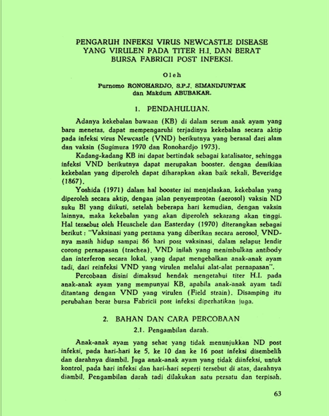 | Judul | Pengaruh infeksi virus newcastle disease yang virulen pada titer H.I dan berat bursal fabrich post infeksi. / RONOHARDJO, Purnomo; SIMANDJUNTAK, Sp. J.; ABUBAKAR, Makdum(Balai Penelitian Veteriner, Bogor (Indonesia)). |