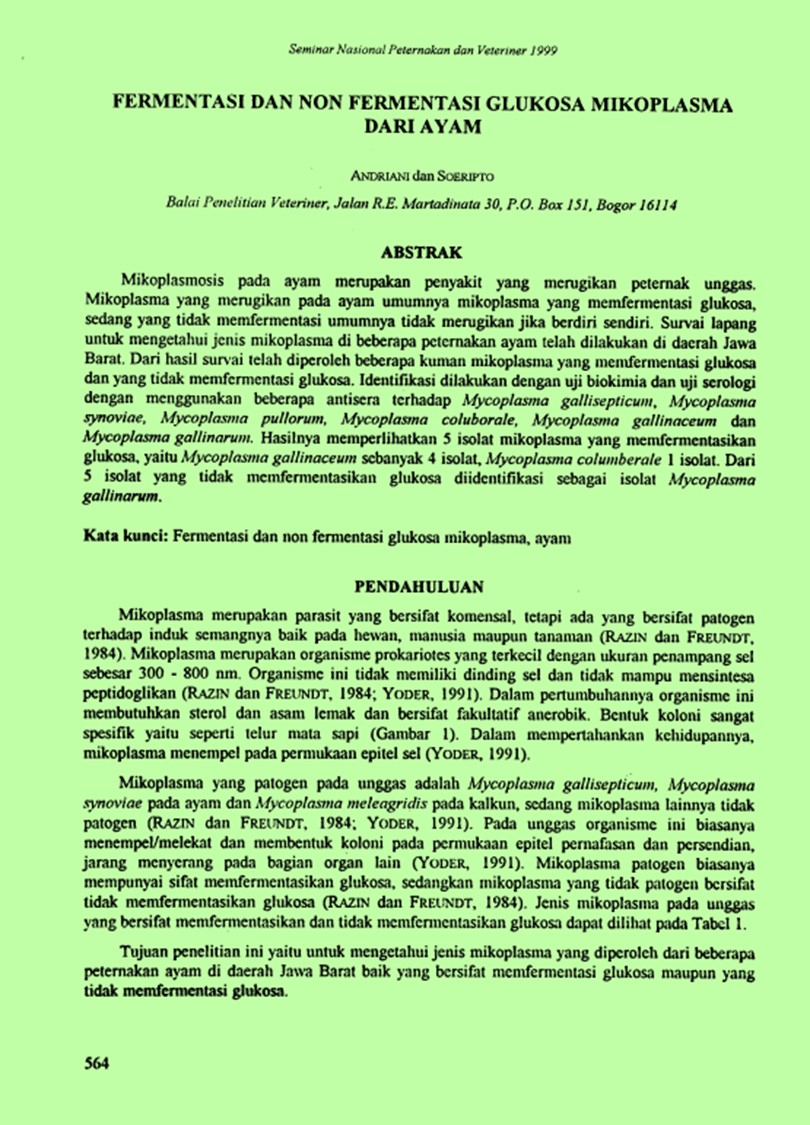 | Judul | Fermentasi dan non fermentasi glukosa mikoplasma dari ayam. / Andriani; Soeripto (Balai Penelitian Veteriner, Bogor) |