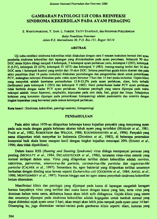 | Pengarang | Sani, Yulvian Parede, Lies Syafriati, Tatty Poeloengan, Masniari(Balai Penelitian Veteriner, Bogor (Indonesia)). |