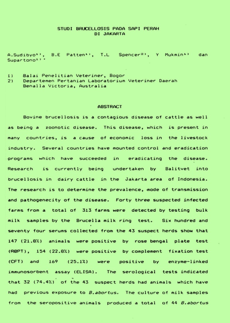 | Judul | Studi Brucellosis Pada Sapi Perah di Jakarta / Sudibyo, Agus |