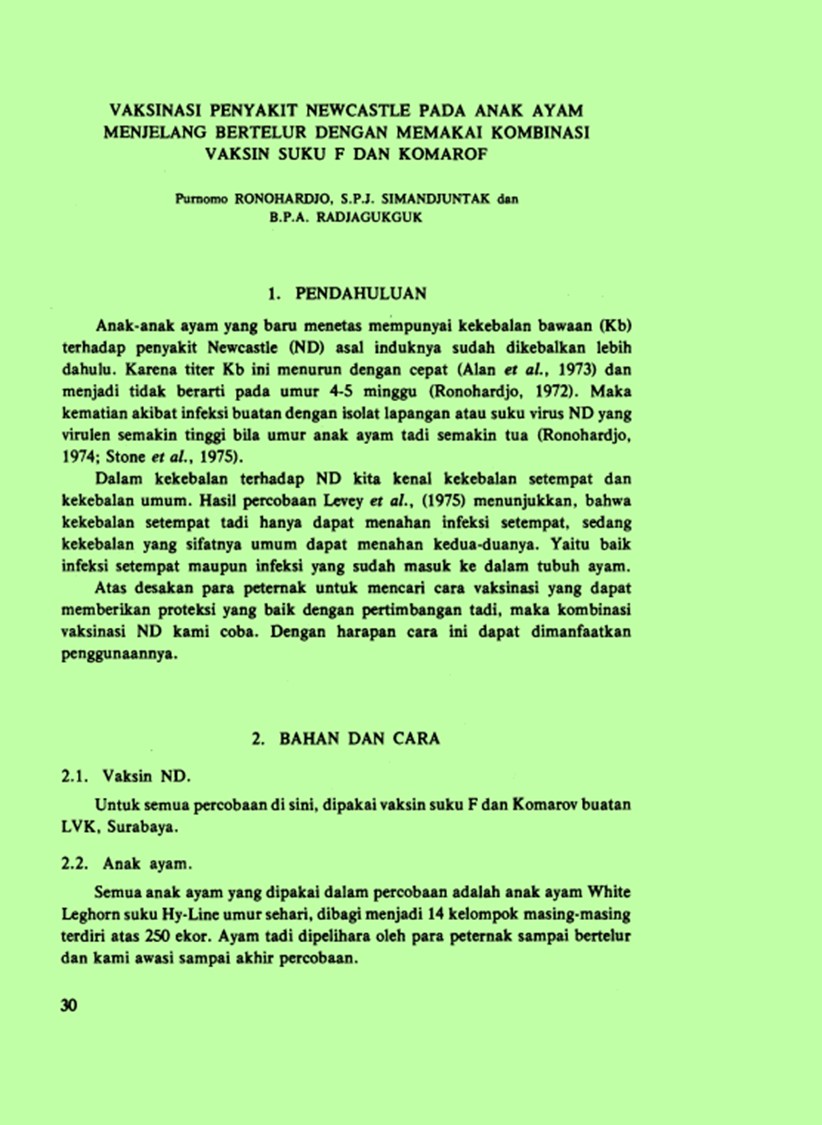 | Pengarang | SIMANDJUNTAK, Sp. J. RADJAGUKGUK, B.P.A.(Balai Penelitian Veteriner, Bogor Indonesia). |