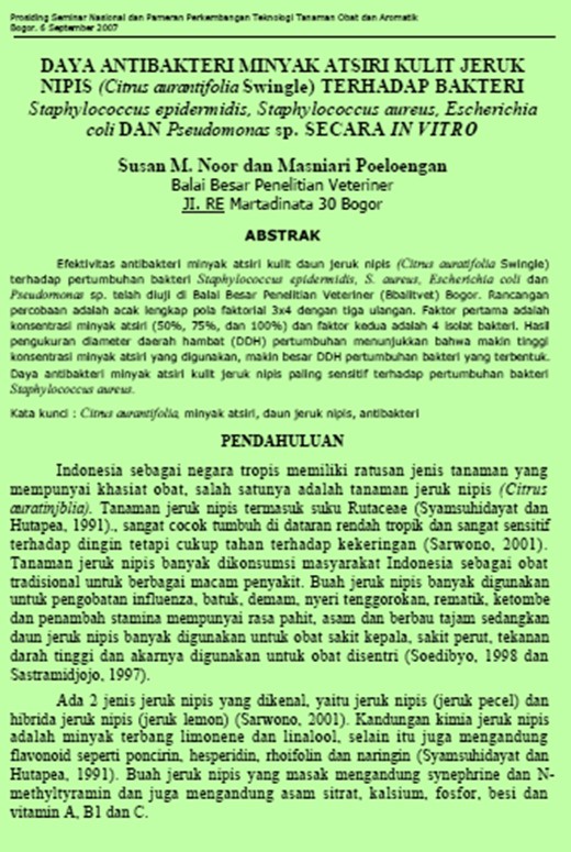 | Subjek | Citrus aurantifolia, minyak atsiri, daun jeruk nipis, antibakteri |