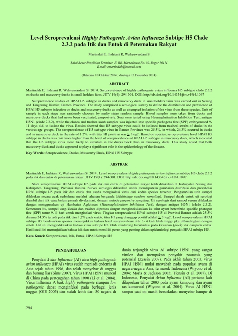 | Subjek | Seroprevalensi, Itik, Entok, HPAI Subtipe H5 |