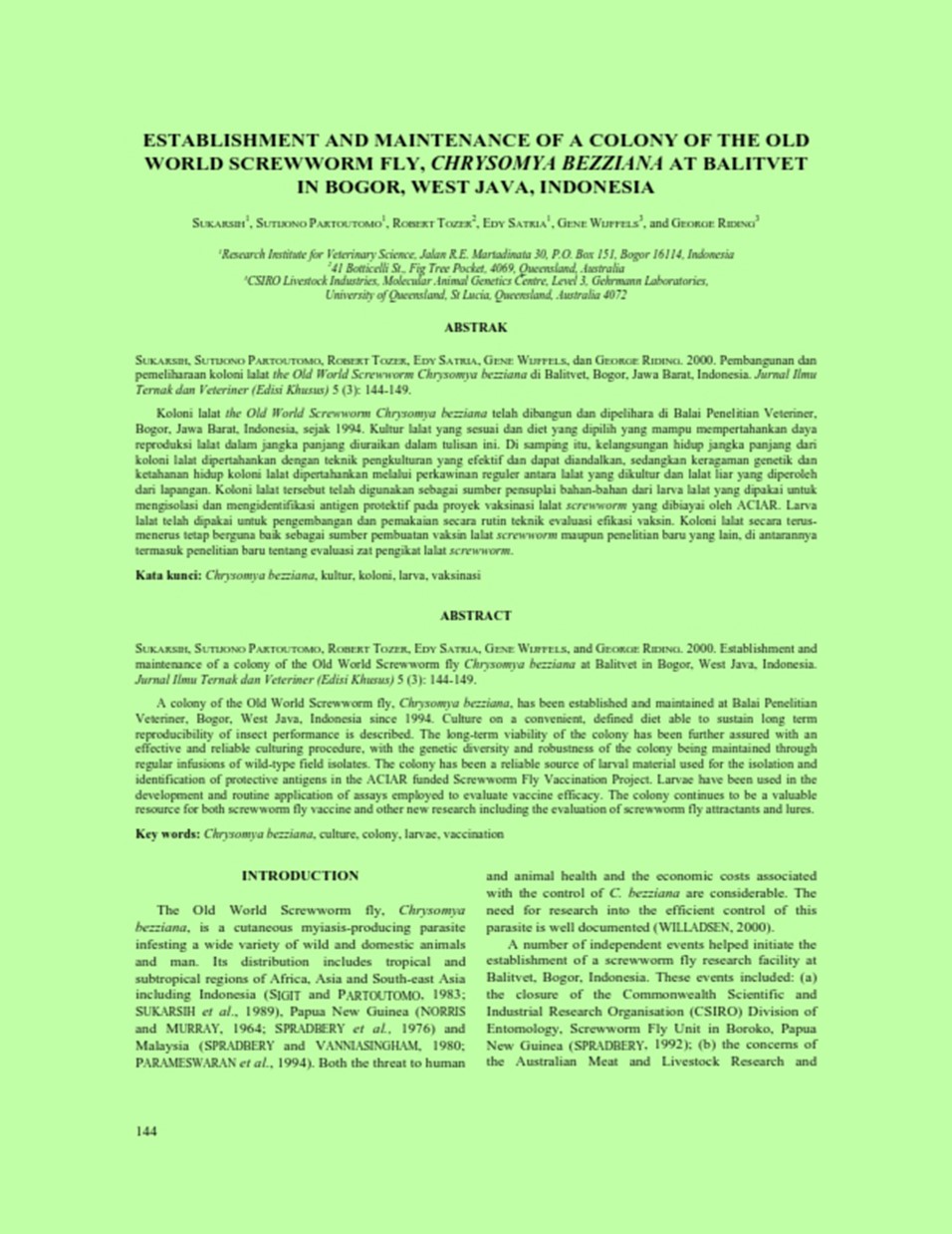 | Subjek | Chrysomya bezziana, culture, colony, larvae, vaccination |