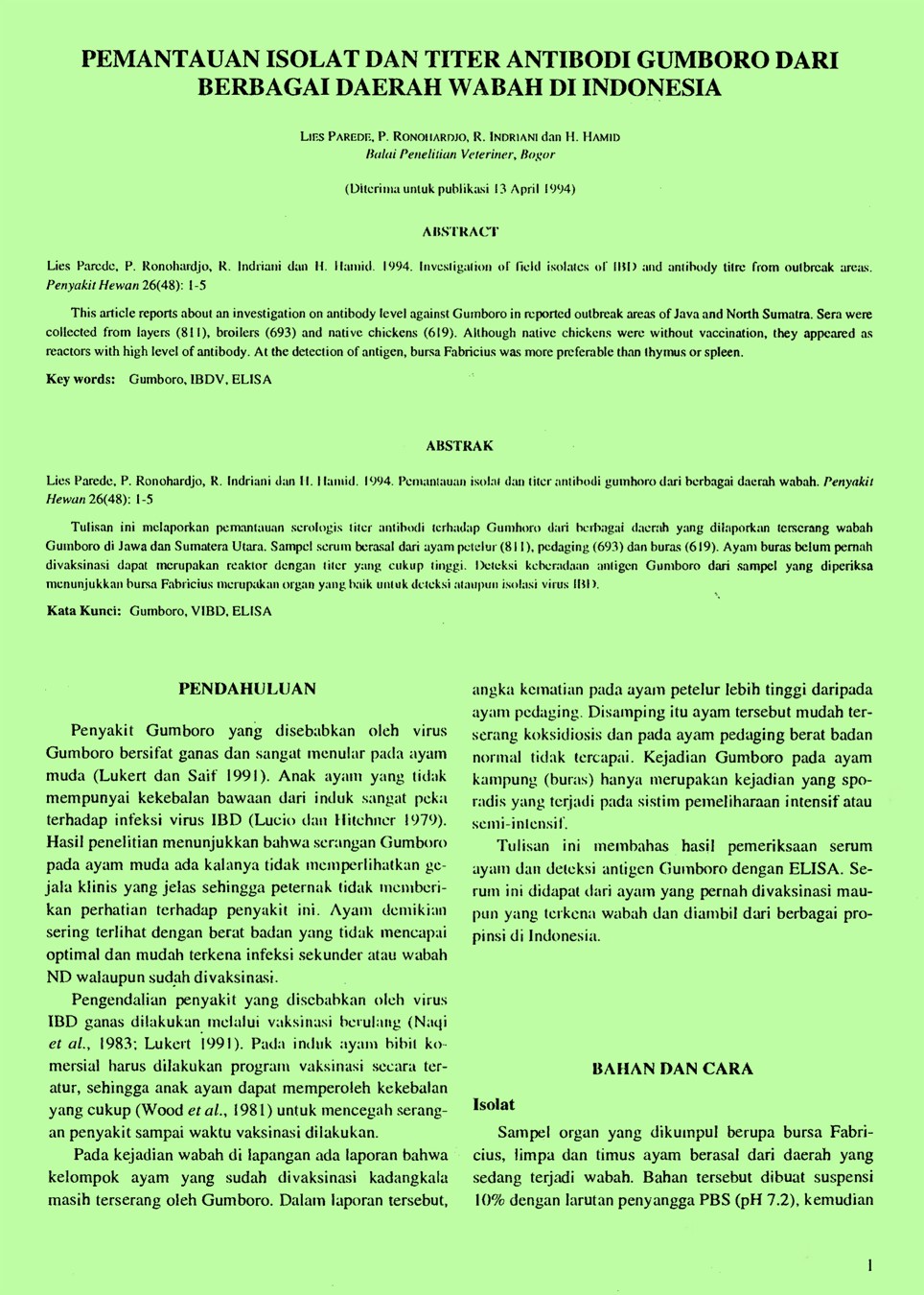 | Pengarang | Ronohardjo, P Indriani, R Hamid, H[Balai Penelitian Veteriner, Bogor]. |