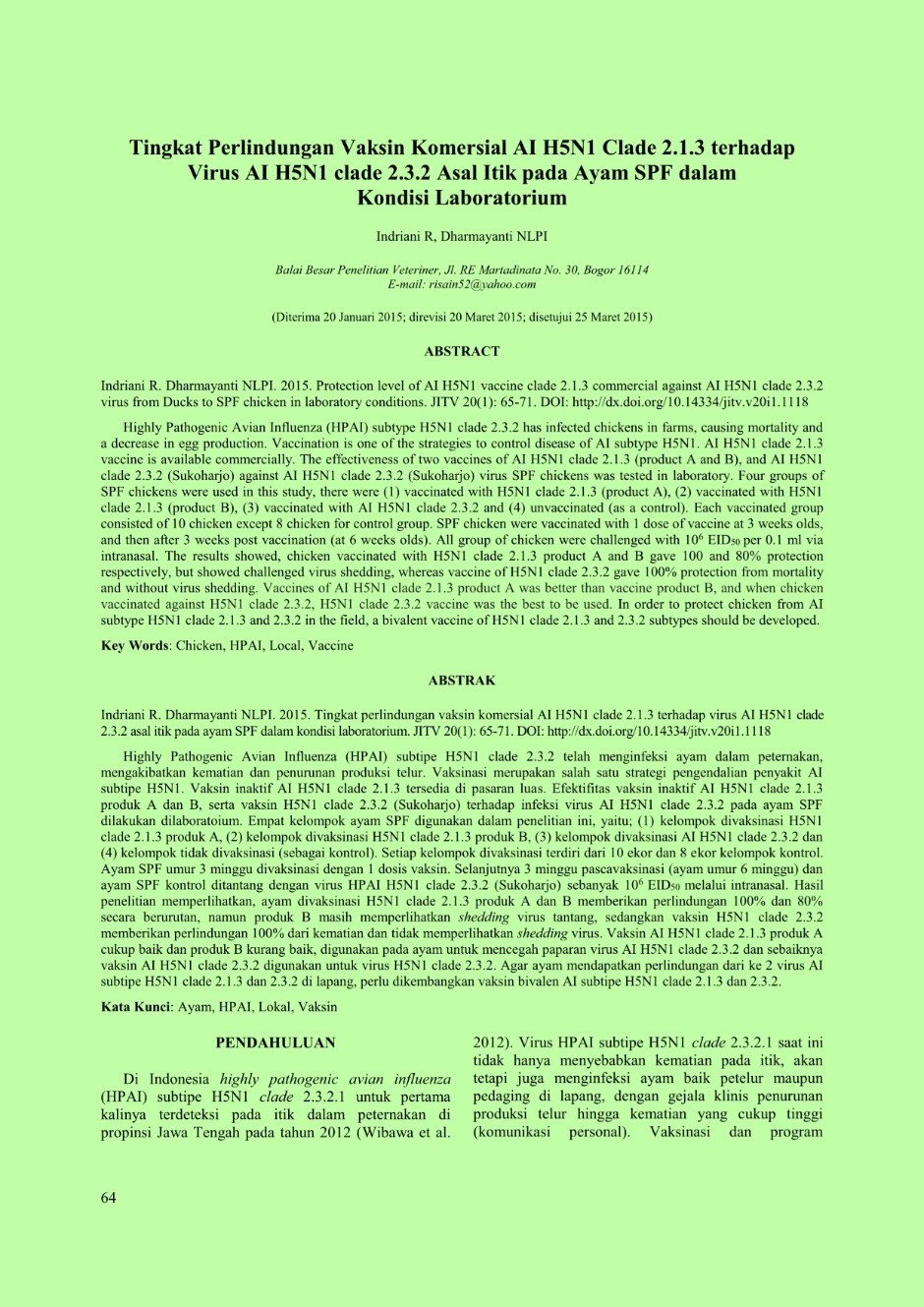 | Subjek | Chicken, HPAI, Local, Vaccine |