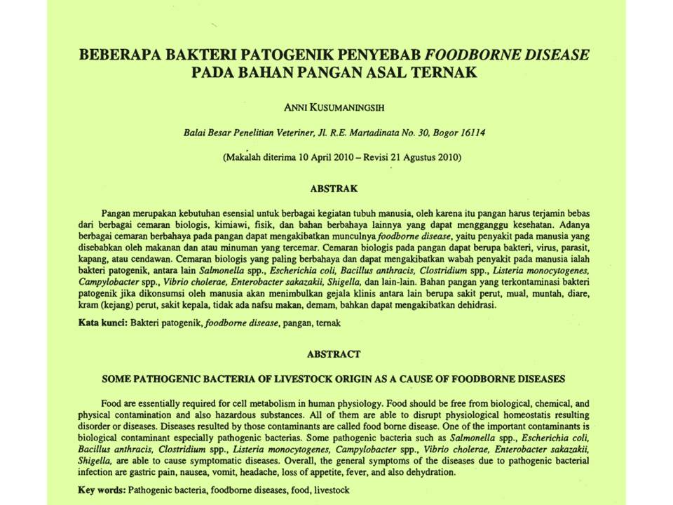 | Subjek | Bakteri patogenik foodborne diseases pangan ternak |