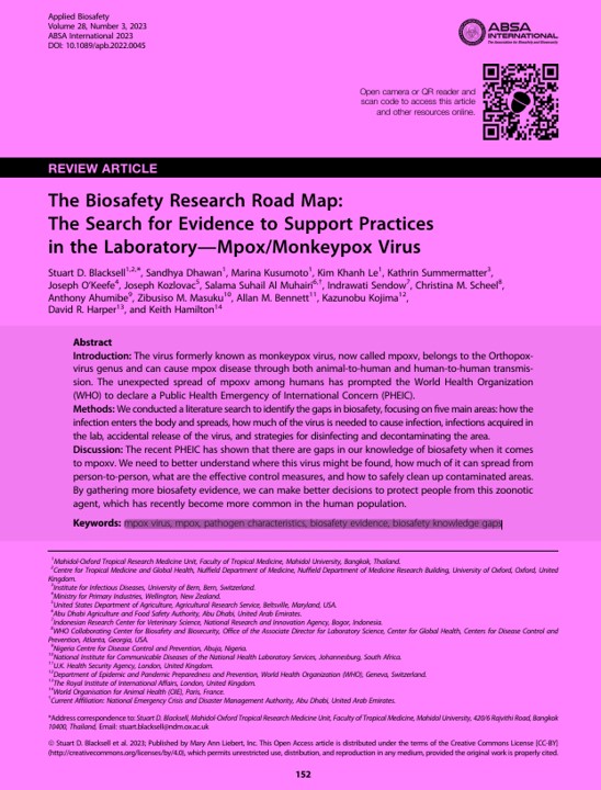| Subjek | mpox virus mpox pathogen characteristics biosafety evidence biosafety knowledge gaps |