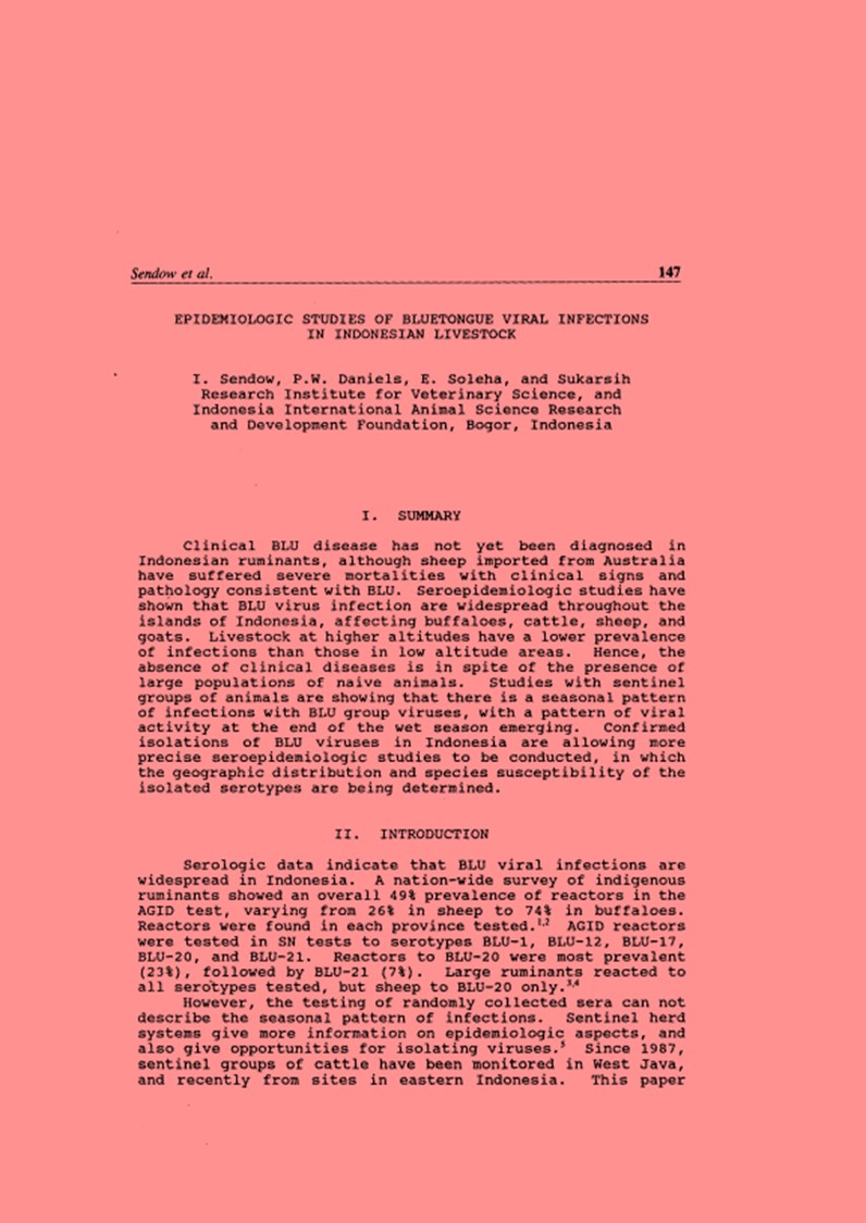 | Judul | EPIDEMIOLOGICAL STUDIES OF BLUETONGUE VIRAL INFECTION IN INDONESIA LIVESTOCK / I. SEDOW |