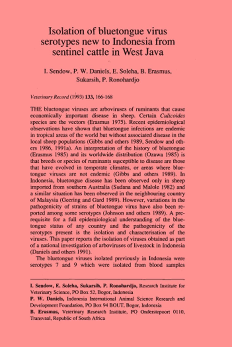 | Judul | ISOLATION OF BLUETONGUE VIRUS SEROTYPES NEW TO INDOESIA FROM SETINEL CATTLE IN WEST JAVA / I. SEDOW |