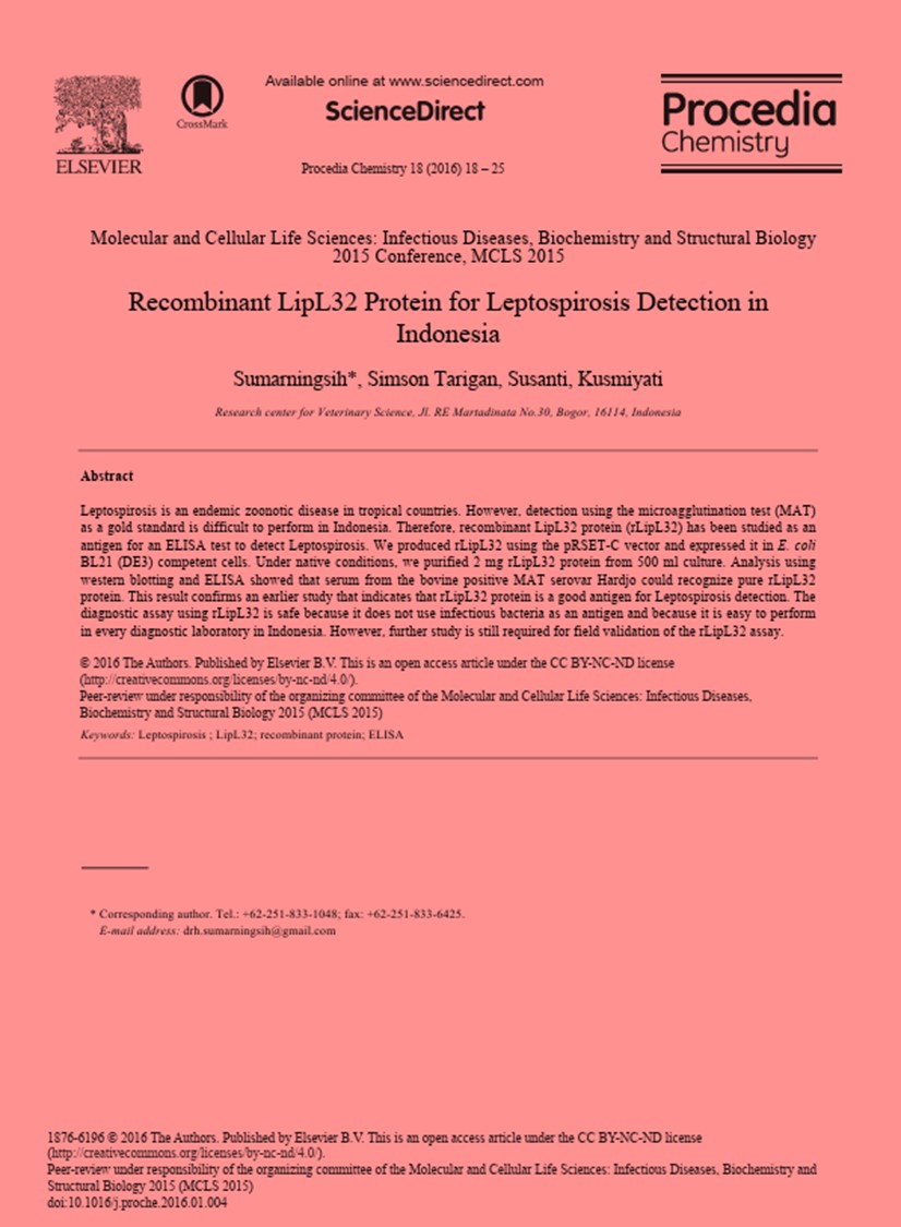| Judul | Recombinant LipL32 Protein for Leptospirosis Detection in Indonesia / Sumarningsih |