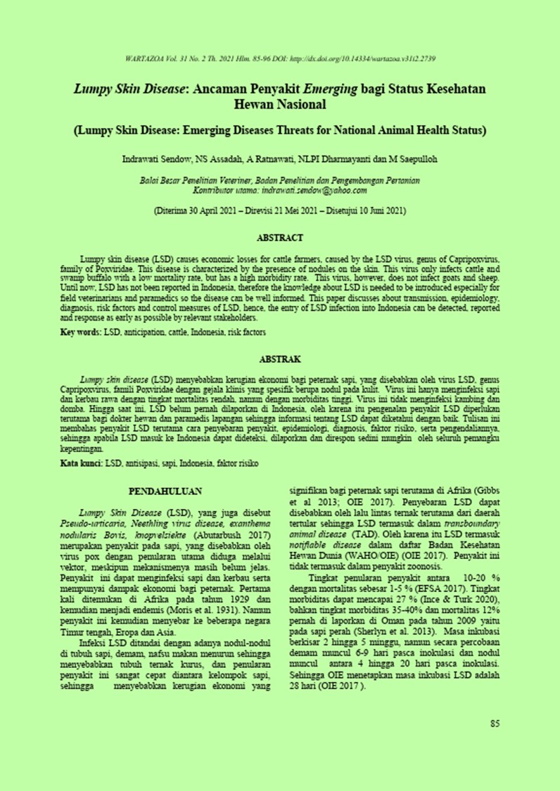 | Penerbitan | Balai Besar Penelitian Veteriner : WARTAZOA, 2021 |