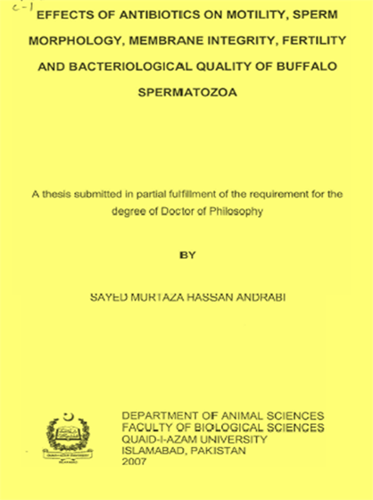 | Judul | Effects of Antibiotics on motility, Sperm morphology, membrane integrity, fertility and bacteriological quality of Buffalo spermatozoa / ANDRABI, Sayed Murtaza Hassan |