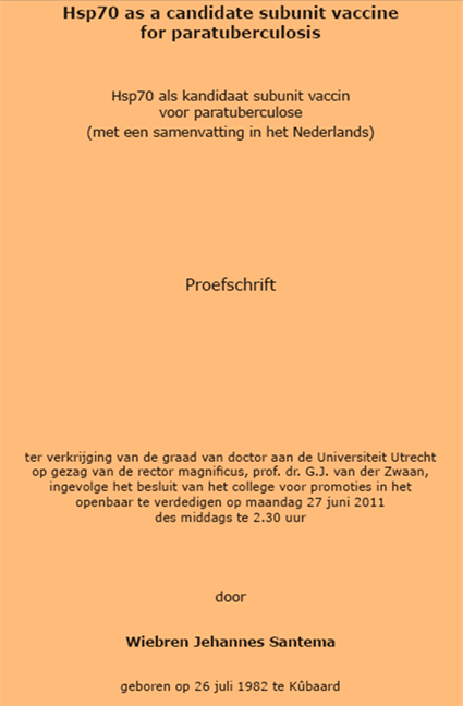 | Judul | Hsp 70 als a candidate subunit vaccine for Paratuberculosis = Hsp 70 als kandidaat subunit vaccin voor Paratuberculose |
