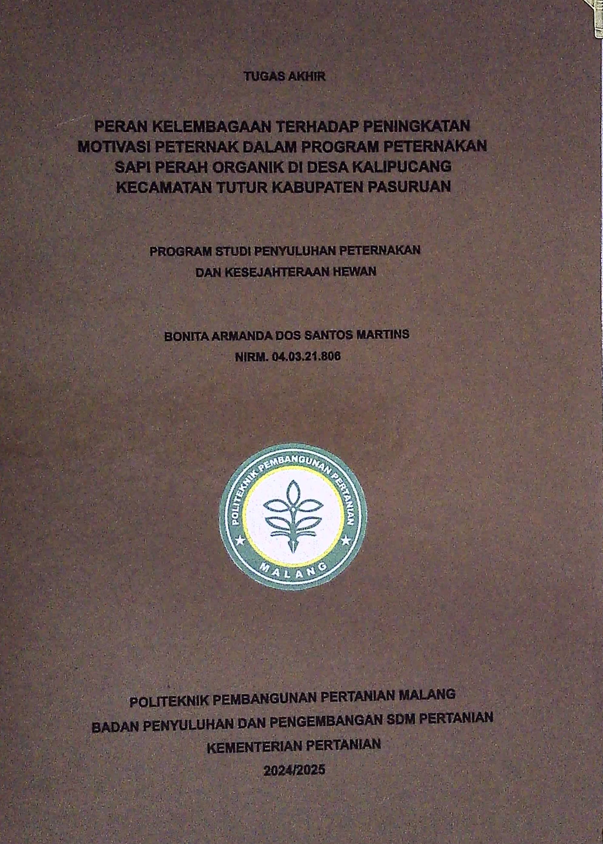 PERAN KELEMBAGAAN TERHADAP PENINGKATAN MOTIVASI PETERNAK DALAM PROGRAM PETERNAKAN SAPI PERAH ORGAN....