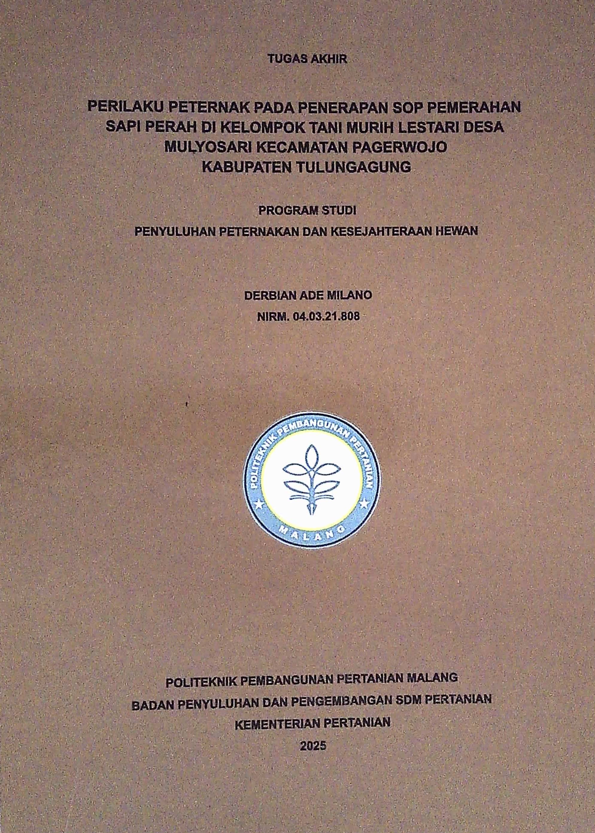 PERILAKU PETERNAK PADA PENERAPAN SOP PEMERAHAN SAPI PERAH DI KELOMPOK TANI MURIH LESTARI DESA MULYOS....